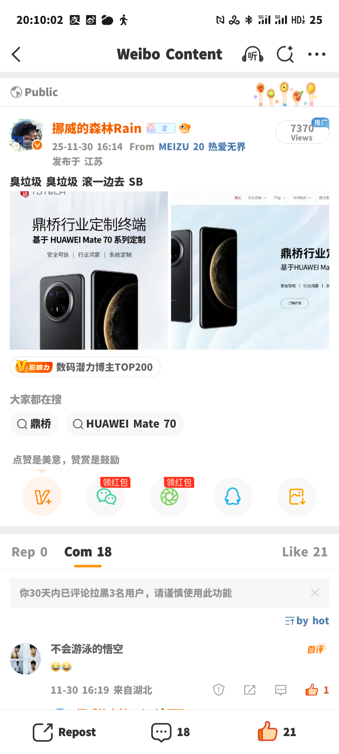 垃圾就该丢进垃圾桶里,这是钟馗说的你往垃圾桶里丢就行了,你往微博上发是什么意思(自嘲)也不知道是你家哪条狗举报我的,这狗是挺护主人的哈,看着点,别让它乱咬人就行
