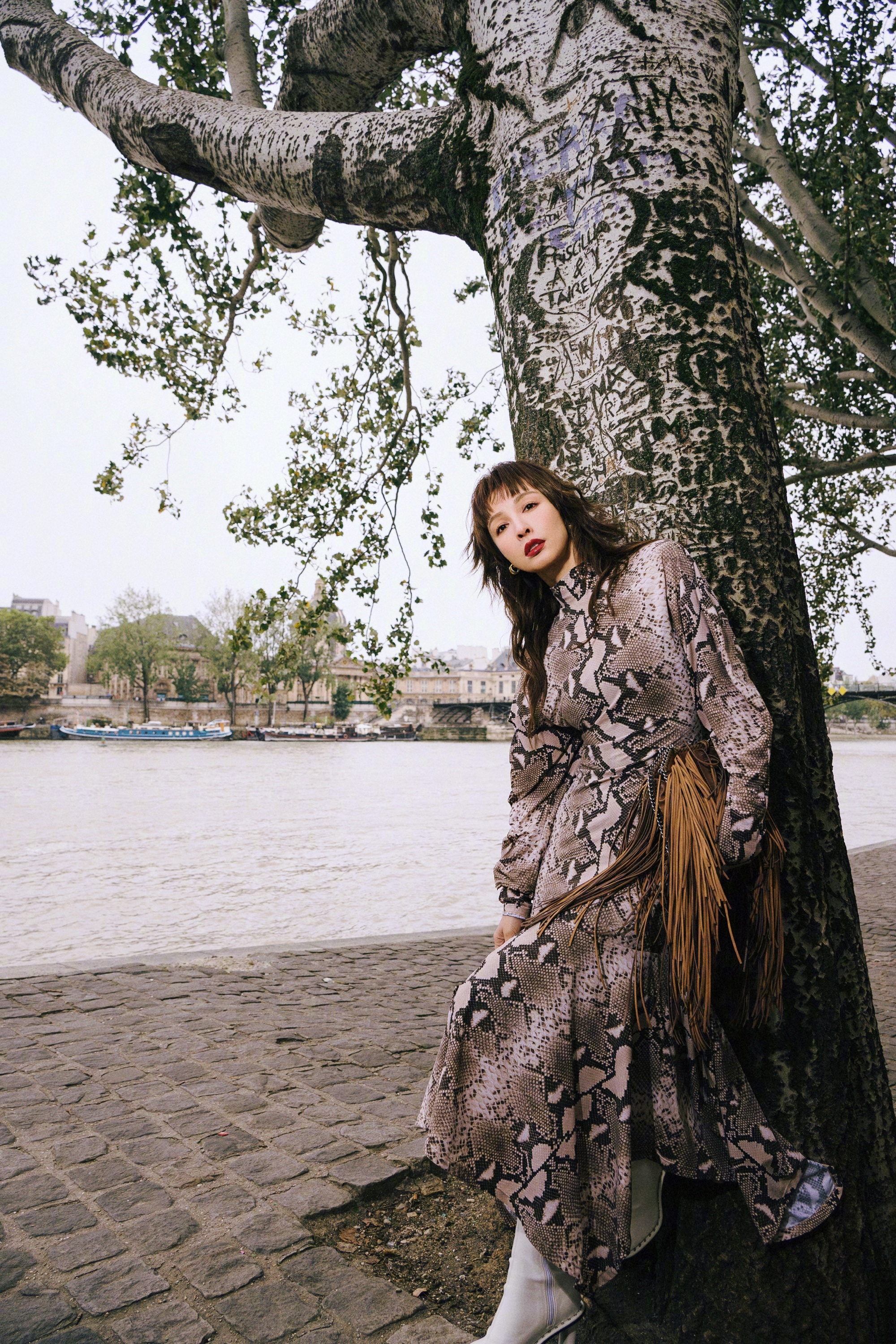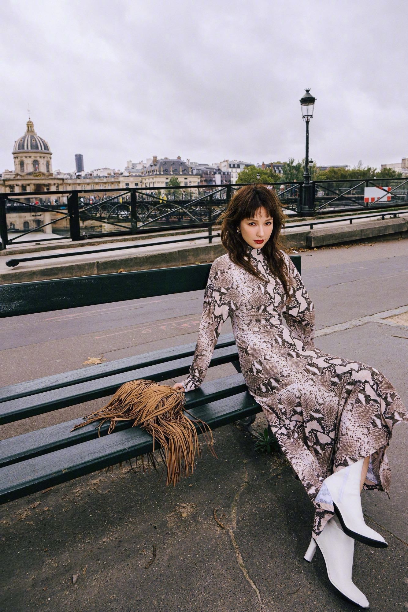 吴昕时装周十月穿搭大片:一袭蛇纹长裙,浪漫迷人