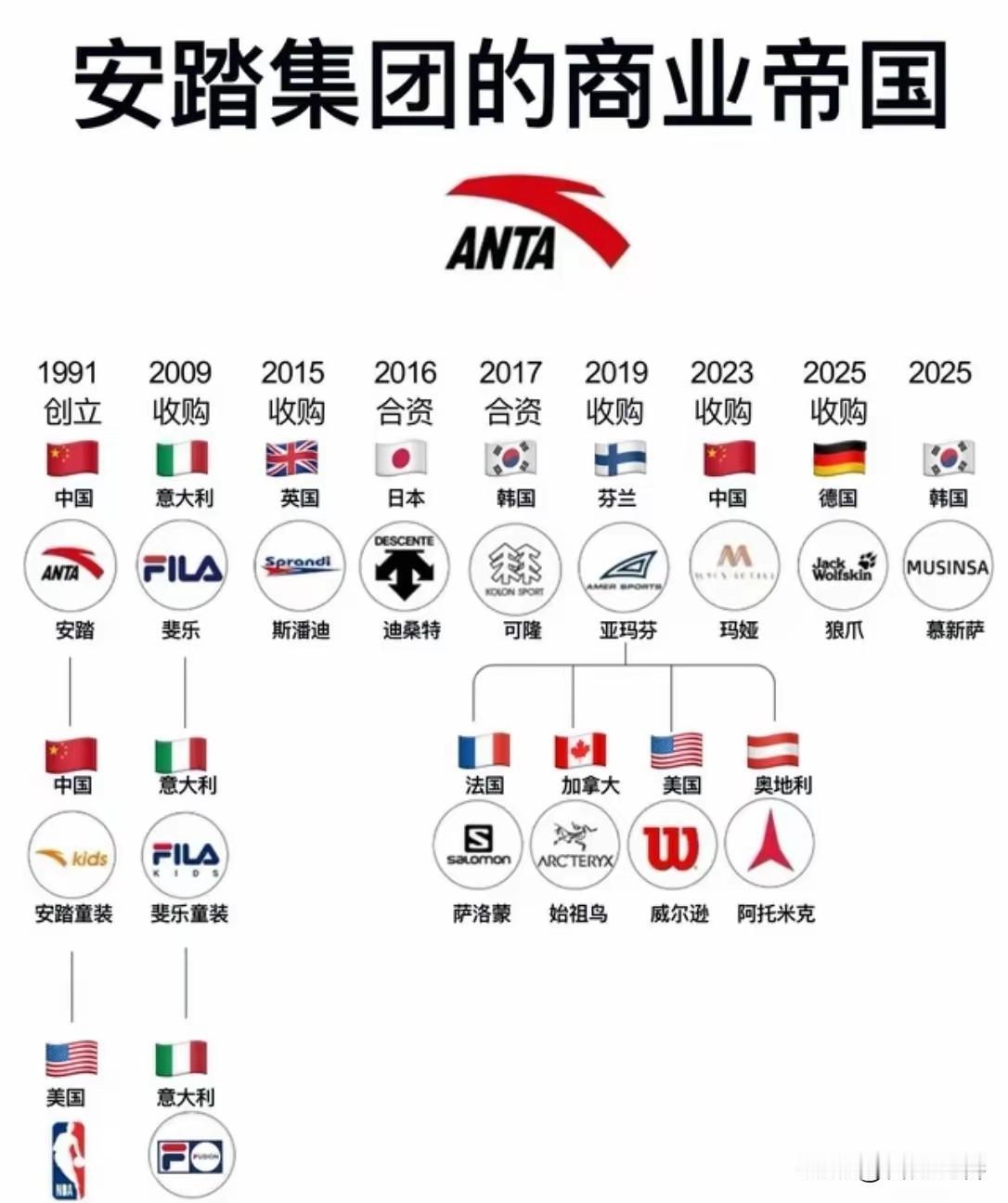 晋江安踏集团意向再收购德国🇩🇪品牌彪马(Puma)!此消息一出彪马股价暴涨超18%。 安踏即将完成收购美国🇺🇸锐步。安踏国货之光!是晋江人的骄傲!是中国人的骄傲! 安踏收购众多外国百年知名品牌! 百年来,安踏改写了国内企业被外国收购的命运,为国争光! 目前安踏旗下品牌: 安踏、安踏KIDY 2009年收购意大利🇮🇹FlLA斐乐、斐乐KIDY 2015年收购英国🇬🇧斯潘迪 2016年合资日本迪桑特 2017年合资韩国🇰🇷科隆 2019年收购芬兰🇫🇮亚玛芬 法国🇫🇷萨洛蒙 加拿大🇨🇦始祖鸟 美国🇺🇸威尔逊 奥地利🇦🇹阿托米克 2023年收购国内品牌玛伊娅 2025年收购德国🇩🇪狼爪 2025年收购韩国🇰🇷慕斯萨