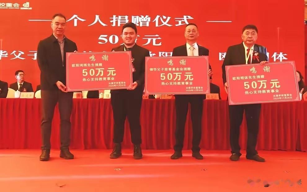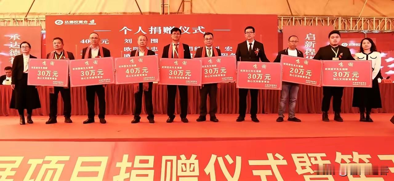 晋江市英林镇三欧村达德小学、达德幼儿园,高质量发展项目捐赠仪式暨第五届校董会就职典礼! 第五届校董会向达德学校捐赠1000万元。 刘宏达先生捐赠150万元 刘基增家族基金会捐赠100万元 欧阳鸿博先生捐赠50万元 欧阳明体先生捐赠50万元 钿华父子慈善基金会捐赠50万元,及各位乡贤的捐款,达到1900多万元。