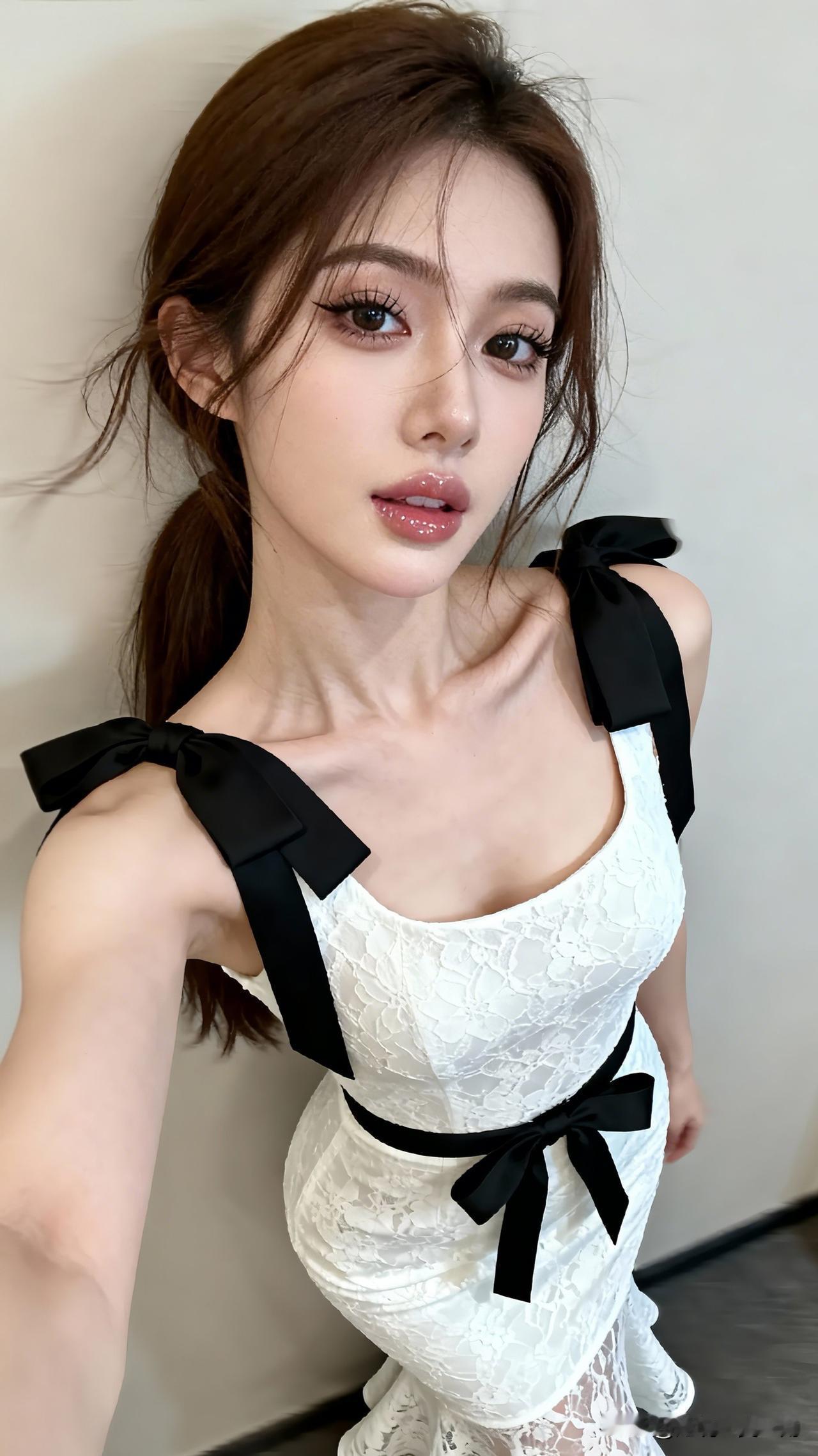 轻纱拂面,娇颜如花。女生如何穿搭白衬衫才时尚 甜美少女风,蕾丝连衣裙,黑蝴蝶结,自拍美照