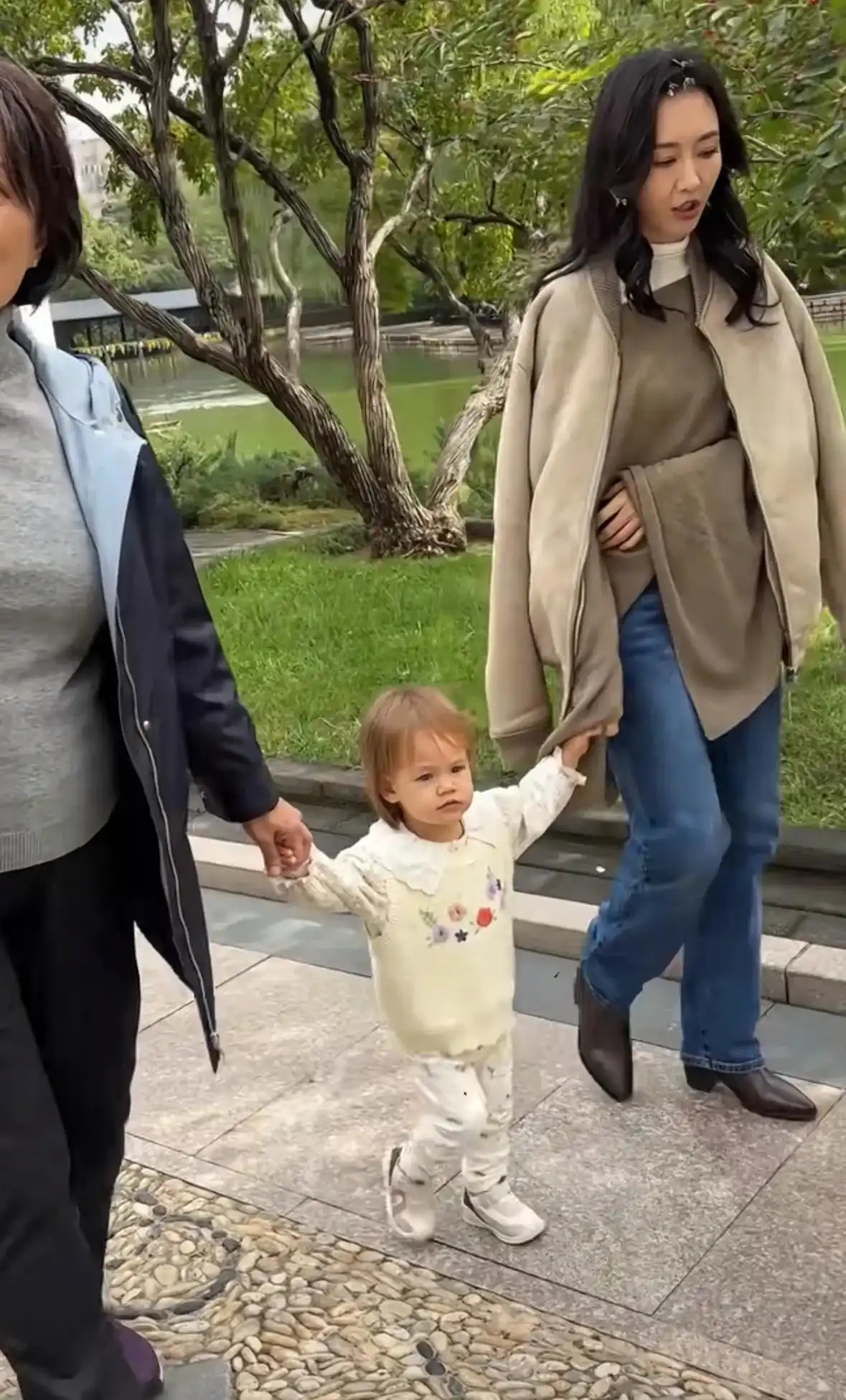 王鸥带女儿学步被偶遇,小公主一身白衣太敢穿?这当妈的状态让人意外