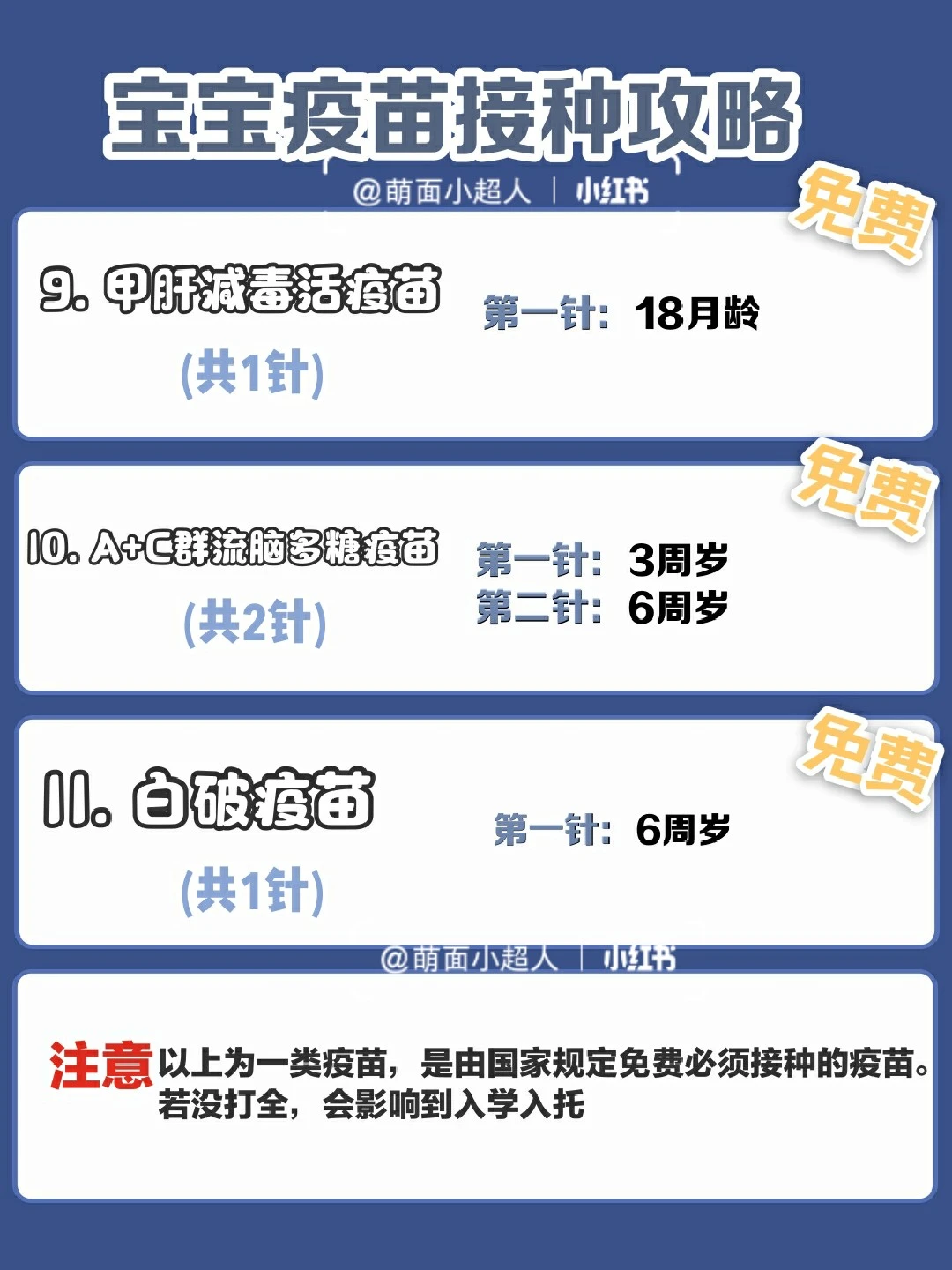 注意:脊灰疫苗和流脑疫苗,可选自费,效果更好。