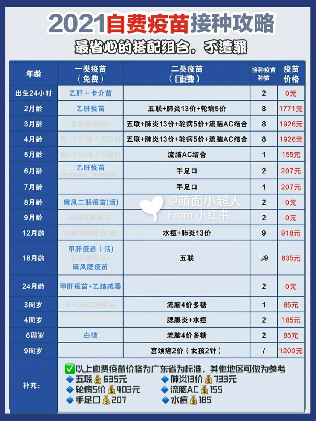 翻阅不少权威资料,咨询了专业医生,总结出这篇笔记,自费疫苗价格是按广东这边标注的,其他地区可做参考。