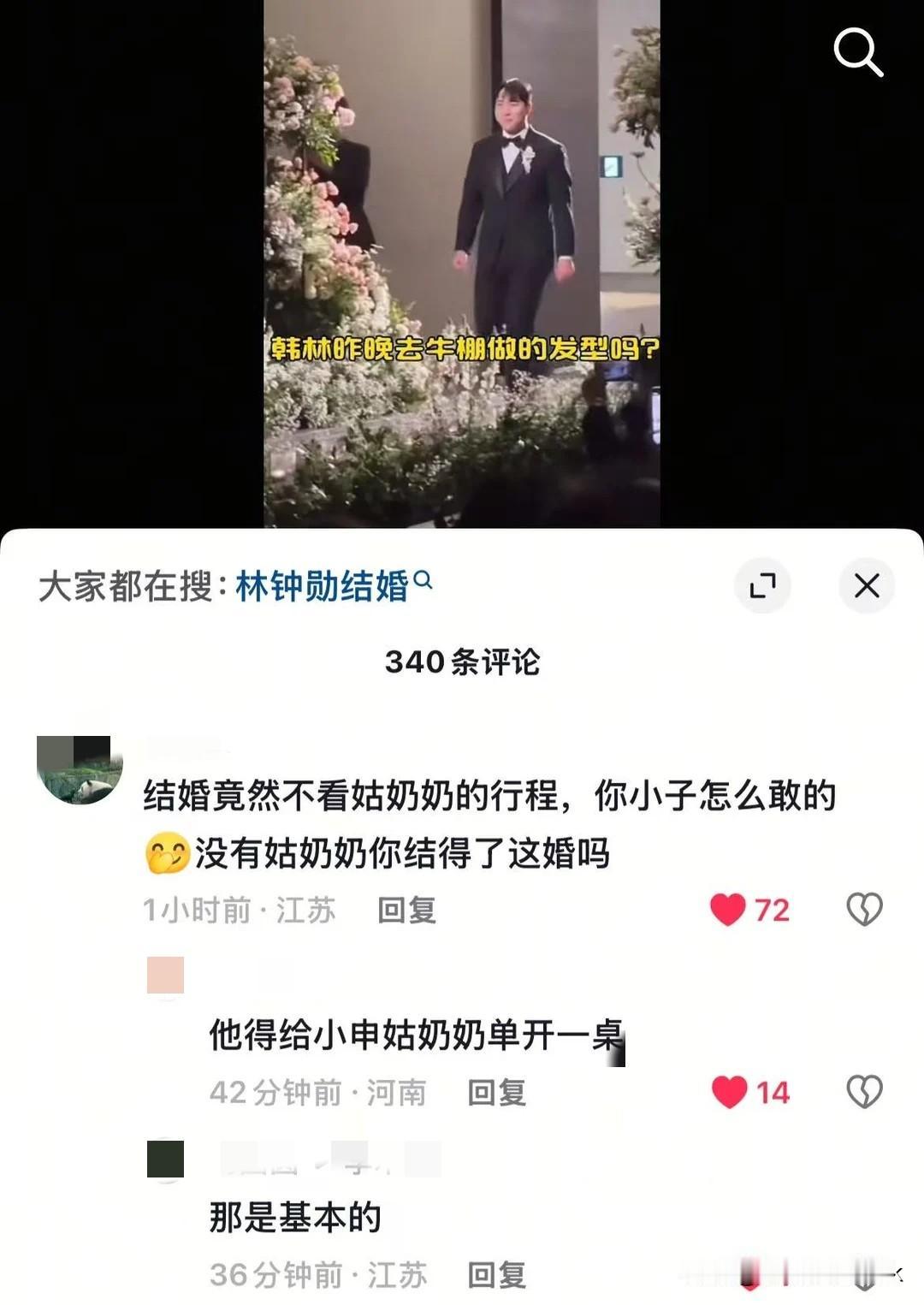韩林结婚,被网友评论笑死,你小申姑奶奶还在打球呢[呲牙] 韩国乒乓球运动员林钟勋今天和相恋多年的女友结婚了,但是被网友评论笑死 结婚也不看看你小申姑奶奶的行程,没有姑奶奶,你今天能结婚吗?[呲牙] 去年巴黎奥运会,韩林和申裕斌搭档得了季军,本来韩林打完比赛 就要去服兵役,因为这个奖牌,他的兵役被免了,否则今天的他,在服兵役[呲牙] 网友都说要给小申磕一个,没有太,韩林这一年过得不会这么滋润[呲牙]