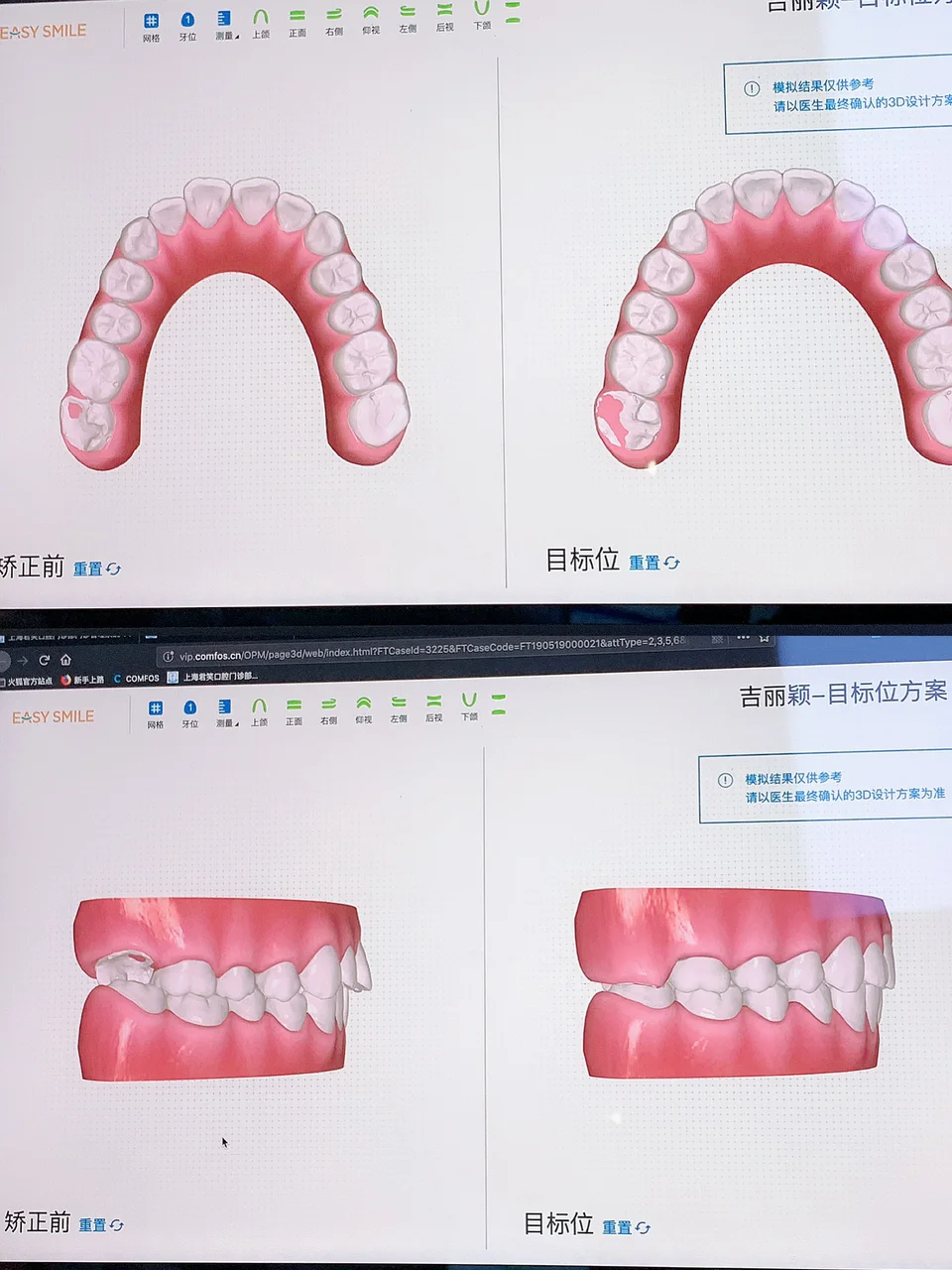 • 等候20分钟左右 医生展示给我看了矫正前/矫正后的电子图像和矫正方案。