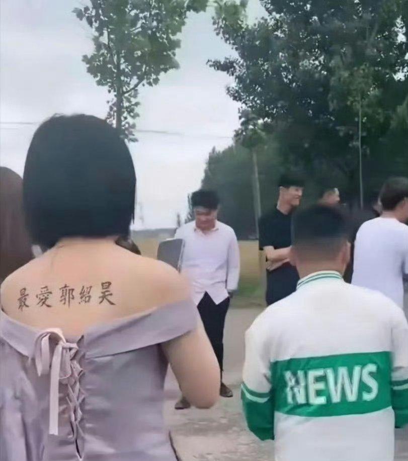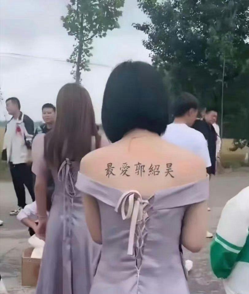 这个女孩子为了他爱的人也是下了血本了,在她的背上纹着他最心爱男孩子的名字,可能在他看来他心里面的那个最爱必须要刻在身上!反正我是没遇到过!那个女孩子把我的名字刻到她的身上的! 对于这种做法,你们怎么看呢?大家在评论区写出来!