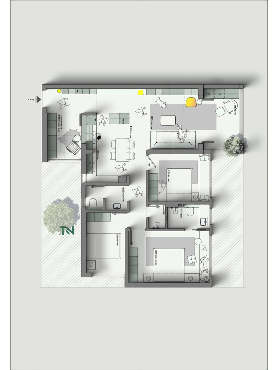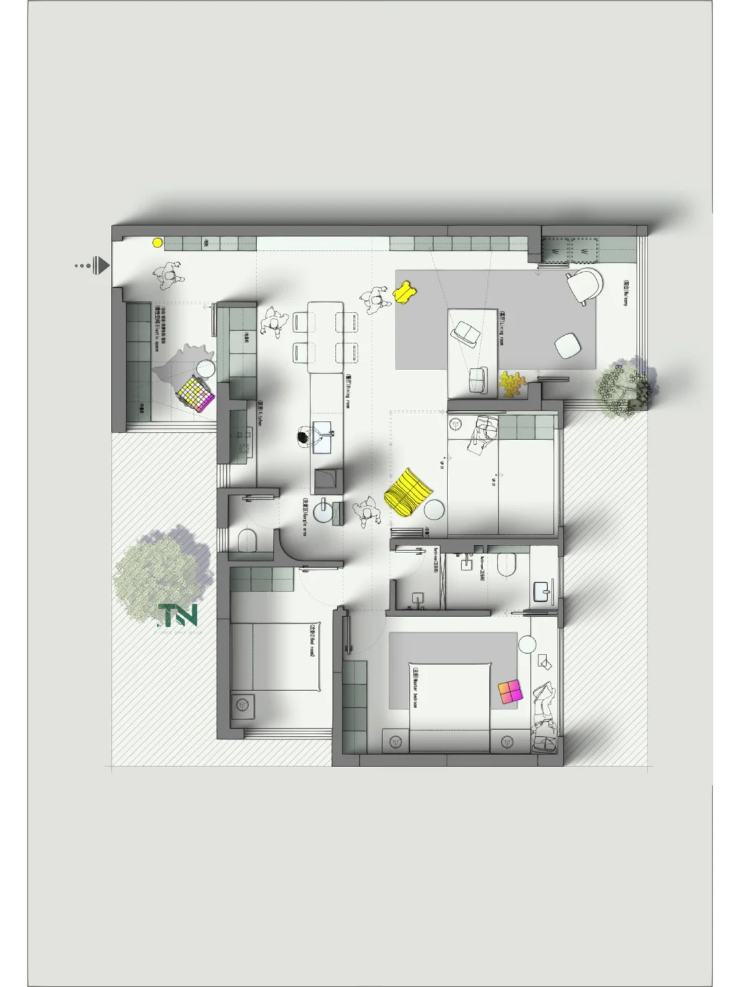 设计需求: 1、拓展四房(家里偶尔客人留宿多) 2、餐厅一定要大(聚餐比较多) 3、厨房开放式 4、储物功能一定要多 5、客厅尽可能大