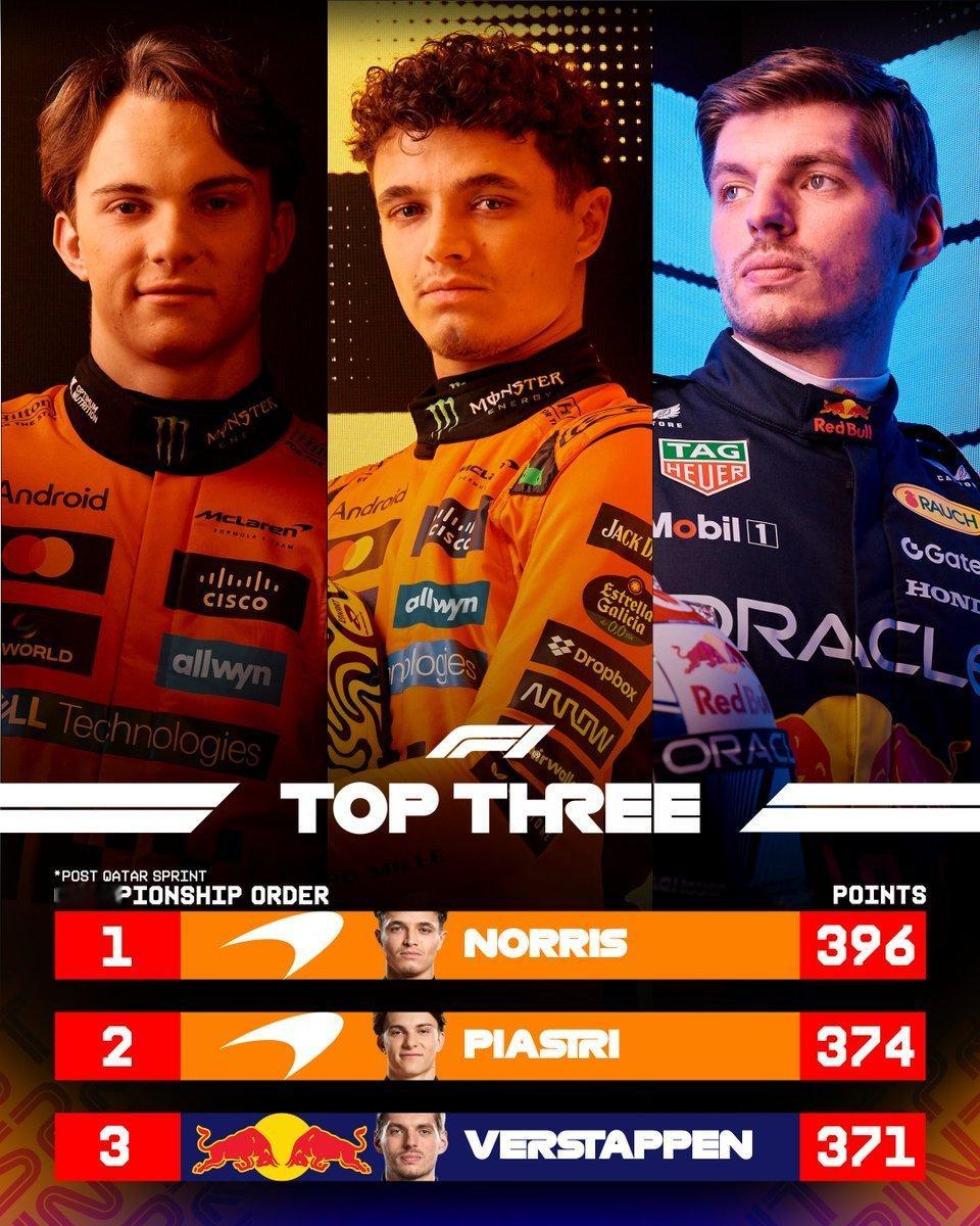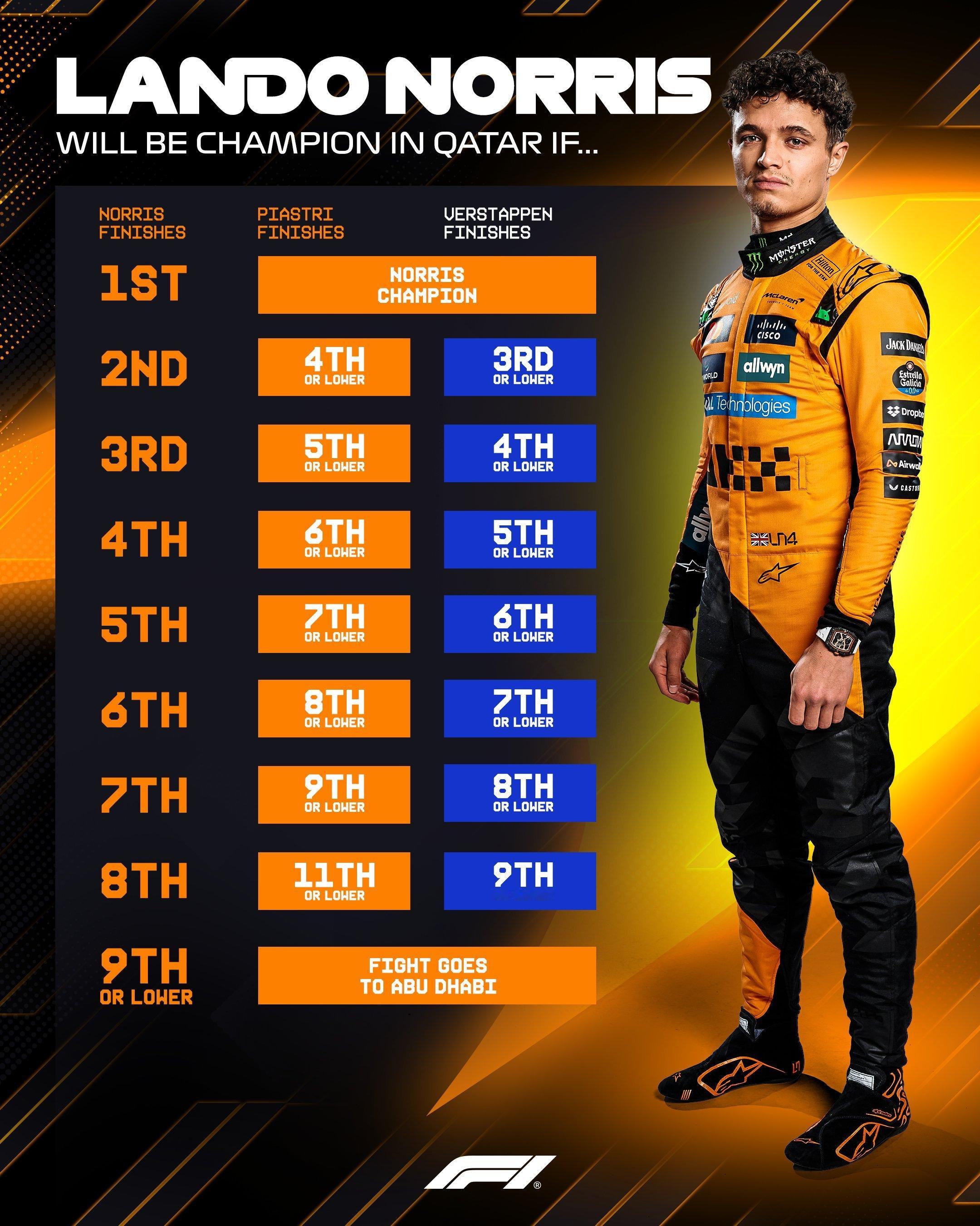 F1官方已经把气氛渲染到这了,诺里斯只需要赢下今晚的卡塔尔大奖赛,那2025赛季的车手世界冠军争夺战将会提前结束……从纯吃瓜的角度,唔好啦,我想看斗到最后一场~📈 F1F1赛车