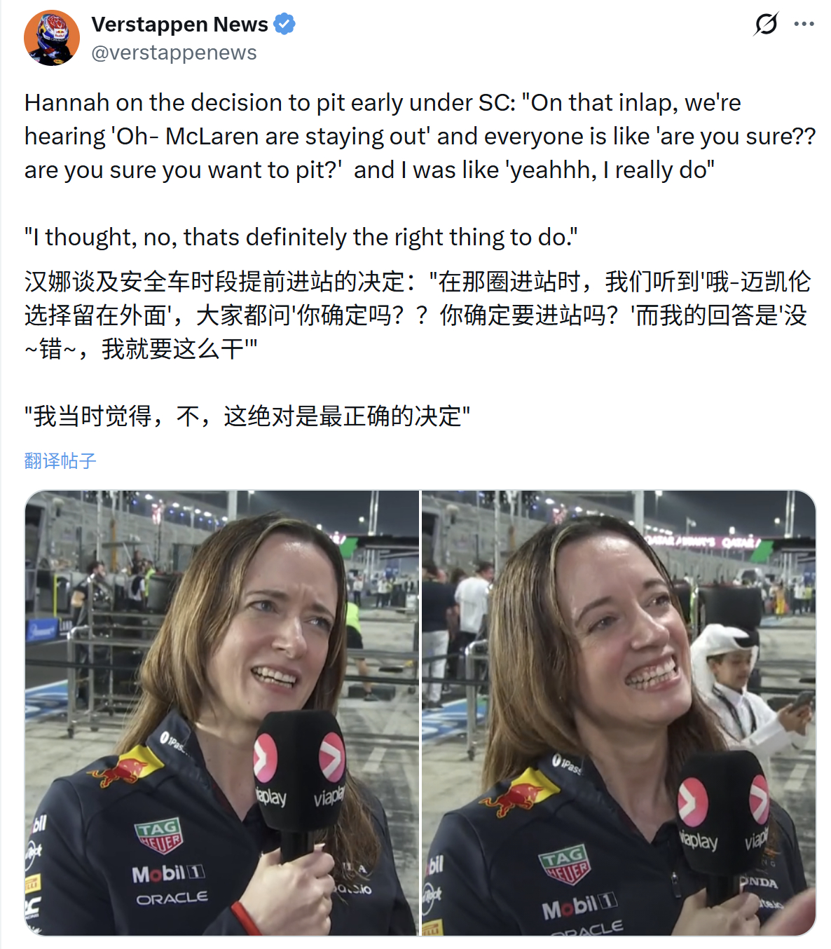 红牛首席策略师汉娜·施密茨在关键时刻的决策⬇️F12025F1卡塔尔大奖赛
