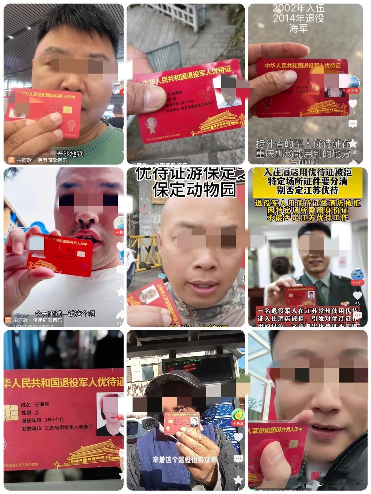 老兵们,再坚持三个月就有新证可以继续发网上晒了! 从优待证到退伍证,可以说退役军人这个身份给了很多人流量!从当初那句冠冕堂皇的“我们不在乎那一块两块,而是国家对我们退役军人的认可。。。”再到景区不免费自己花了128元跑网上吐槽!老兵们,为了流量大家就可劲造。话术嘛,优待证的时候是“曾经为国为民冲锋陷阵。。。”等预备役证到了,大家就发“随时准备着再次为国为民冲锋陷阵。。”只要搅浑征兵制的义务性,避开当兵打仗的职责所在,不提自愿的基本性质,就单纯的站在道德制高点上高呼一日为兵终生为兵的口号就行了! 也不要去管为什么很少有军官晒优待证和复员转业证与未来的预备役证,相比之下他们不就是多读几年书,多懂些不与民争利的军民鱼水情;多知道些当兵打仗是军人的本分,就如经商纳税,为农纳粮的道理一样的世界观;多清楚些给退役军人优待的资源是来自热心社会各界人士的道德观;多了解些人民子弟兵来自人民、服务人民,也将归于人民的军人价值观。。。这些和我们这群连水分子式都不知道的人有多大关系。 心里确信“当穿军装的倒下了,穿西装的就得跪下”的退役军人名言,管他什么挑拨对立。空间站是军人设计的,导弹是军人研究的,航母是军人建造的,超导量子计算机、医药预苗、种子工程、钍基发电、光刻机、核潜艇等等都是军人研制的。什么政治家、教育家、科学家都不需要,世界上只有军事家就可以了! 不管是不是卖优待证的发起这股虚荣人性的风,大家尽管跟着就行了!说不定几个月后又有预备役证皮套,他们说什么大家就跟着,反正大伙智力都不高,也分辨不了它是不是营销手段,跟着人家还有点流量,多涨几个粉!谁要反对或质疑,老兵们就一起骂他们诬陷、诋毁退役军人,骂他们喷子、网络黑嘴。。。他们要是拿出实据,大家就装不认!如果有一样是退役的人提出质疑,大伙就说他假冒退役军人。。。把“退役军人的今天就是现役军人的明天”当做普世真理,管它什么时光变迁。别人要说老兵们是在消费军旅情怀,就指责他们没当过兵没资格评论退役军人。。。 一个看多了网络退役军人为流量与利益各种无底线操作,愧不敢与其群分的退伍老兵留!