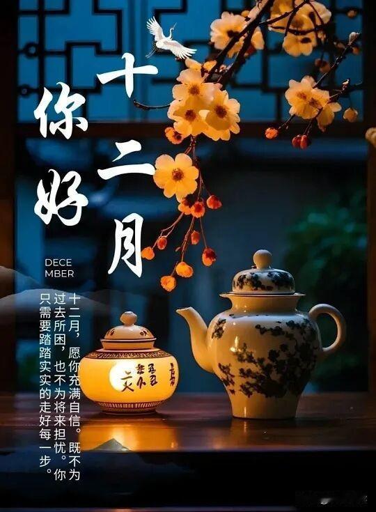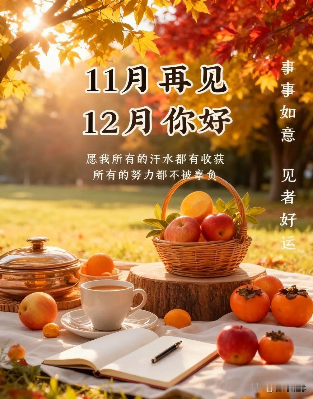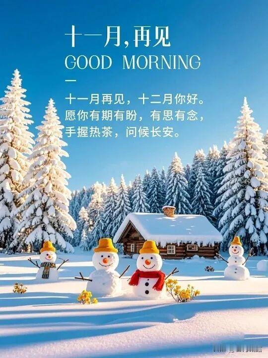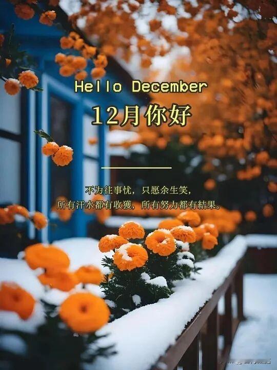 告别十一月的忙碌与奔波,迎接十二月的从容与自在,愿我们在这个月,被温柔包裹,被幸福填满,你好,十二月! 十一月的落叶,是秋天的诗篇,十二月的雪花,是冬天的画笔。再见十一月的斑斓,你好十二月的纯粹,愿我们的生活如诗如画,岁月温柔且漫长。