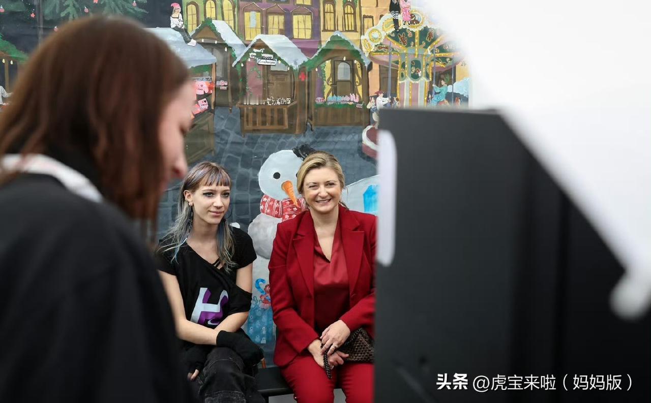 王后是真不怕冷啊!欢迎仪式上,聊着聊着就脱掉了黑色斗篷,不规则裙摆时尚个性,酒红