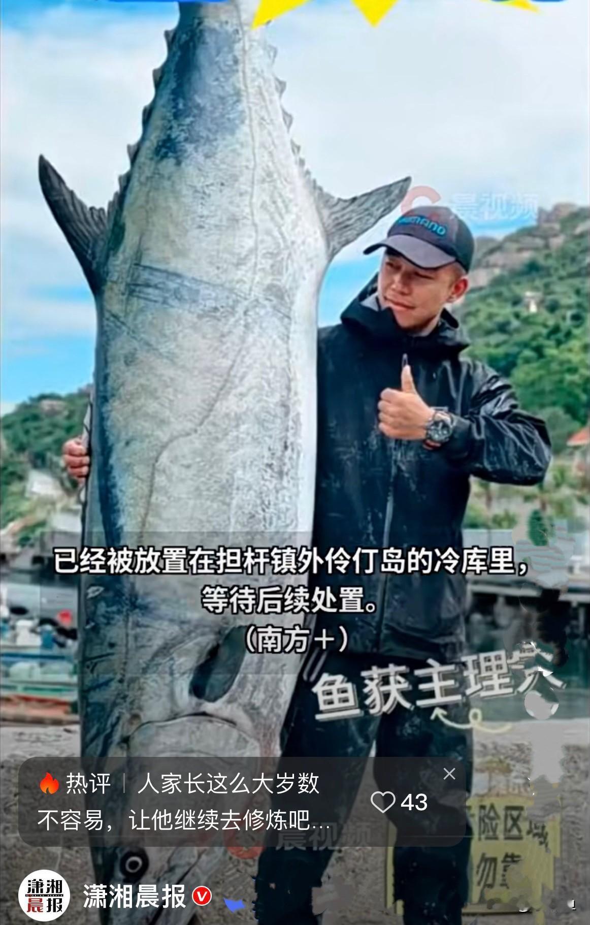 近日,珠海一男子在一海域钓到一条长2.6米、重227.2斤的中华马鲛鱼,太大了,不认识这种鱼,长得有点儿像台鲅鱼,需5名成年男子一起才能抬起来,这是近10年来捕获的最大的鱼…… 钓到这么大的鱼太幸运了,我们也沾沾喜气,马上写出来心想事成,好运连连[锦鲤到来]