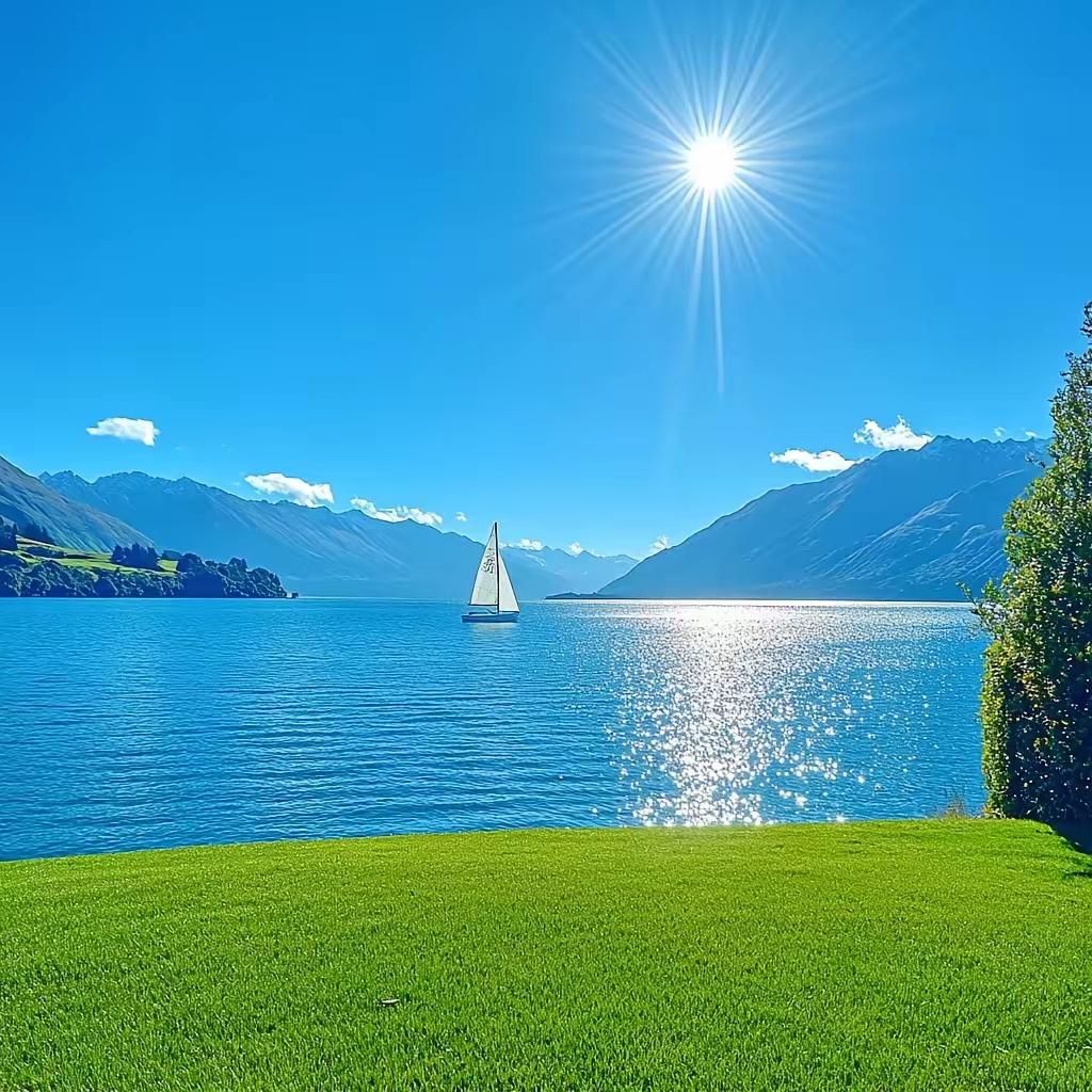 阳光洒满湖面,帆船悠然航行,静享自然之美。