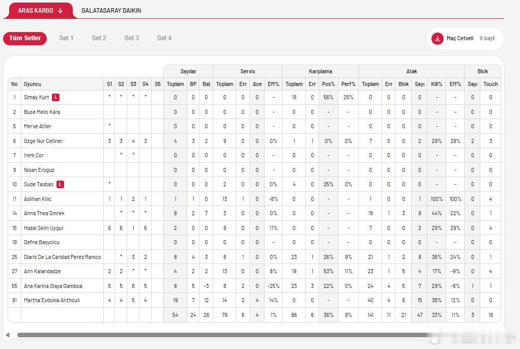 【土超联赛第八轮,加拉3-1阿拉斯】王媛媛留洋第一季世界女排新闻 土超联赛第八轮,阿拉斯卡戈1-3加拉塔萨雷25-23/21-25/19-25/13-25;王媛媛12分(10扣3中8拦1发)卡鲁塔苏20分(32扣15中1被拦1拦4发)伊尔金17分(28扣12中4失误2被拦5拦,19一传4失误)塞拉10分(19扣7中5失误3拦28一传)格罗贝尔纳8分、居维丽6分、邦加尔茨2分;阿拉斯球员安苏丽19分(40扣15中4失误6被拦4发)