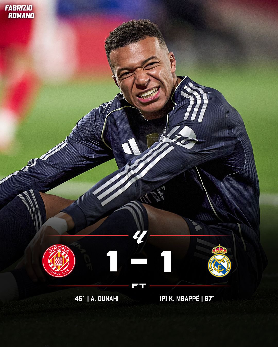 吉罗纳1比1皇马姆巴佩:“这绝对不是我们想要的结果。但联赛还在进行中,而且赛