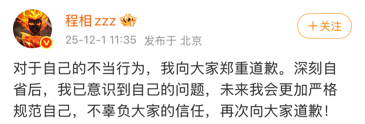 很抱歉第一次发程相就是因为他为乱丢烟头道歉之前看他和徐振轩那个剧还挺火的本来还想