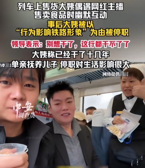2025年,在列车上,售货大姨周某华与网红主播的一次热情互动,竟让她丢了工作。这