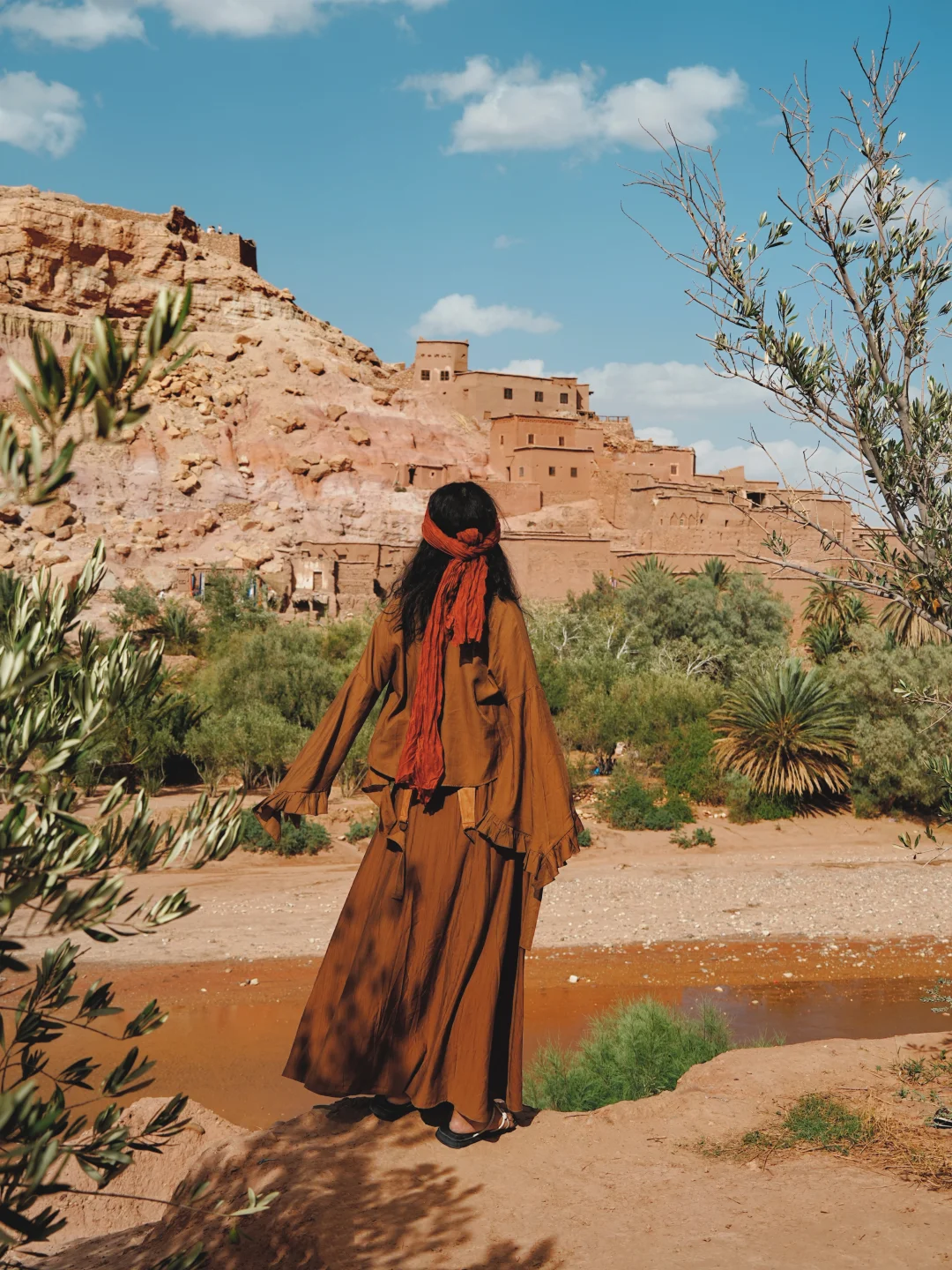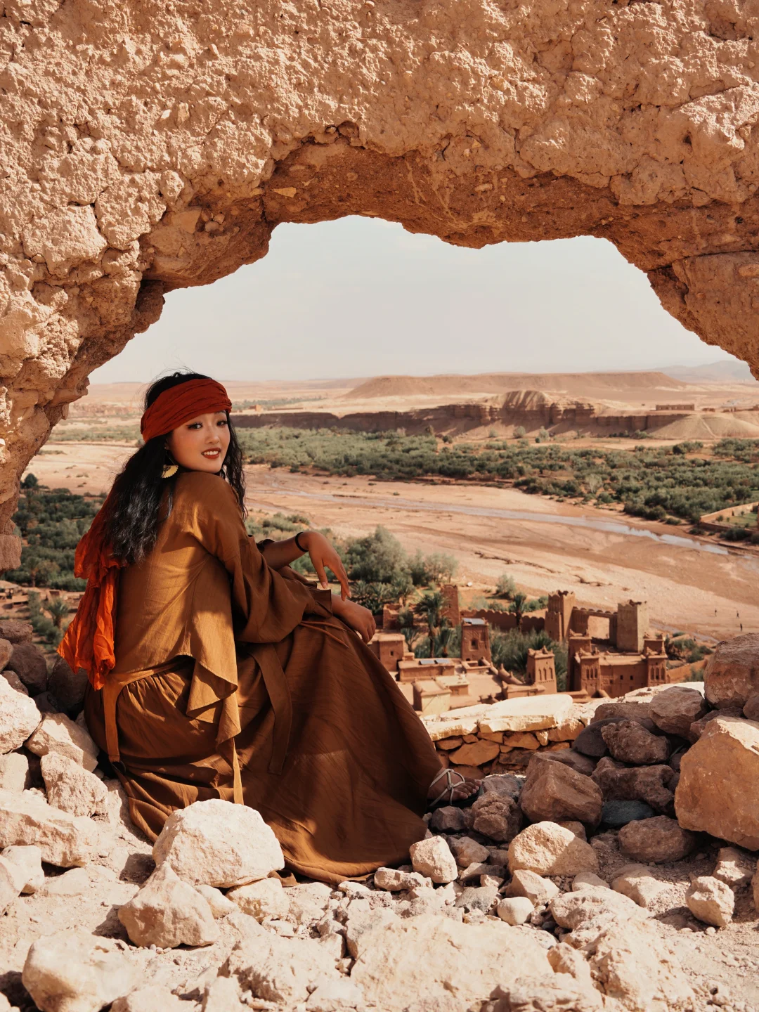 记得穿废土风!和这里绝配!波西风也很适合!这次带了个赤色的头巾,意外地很搭~