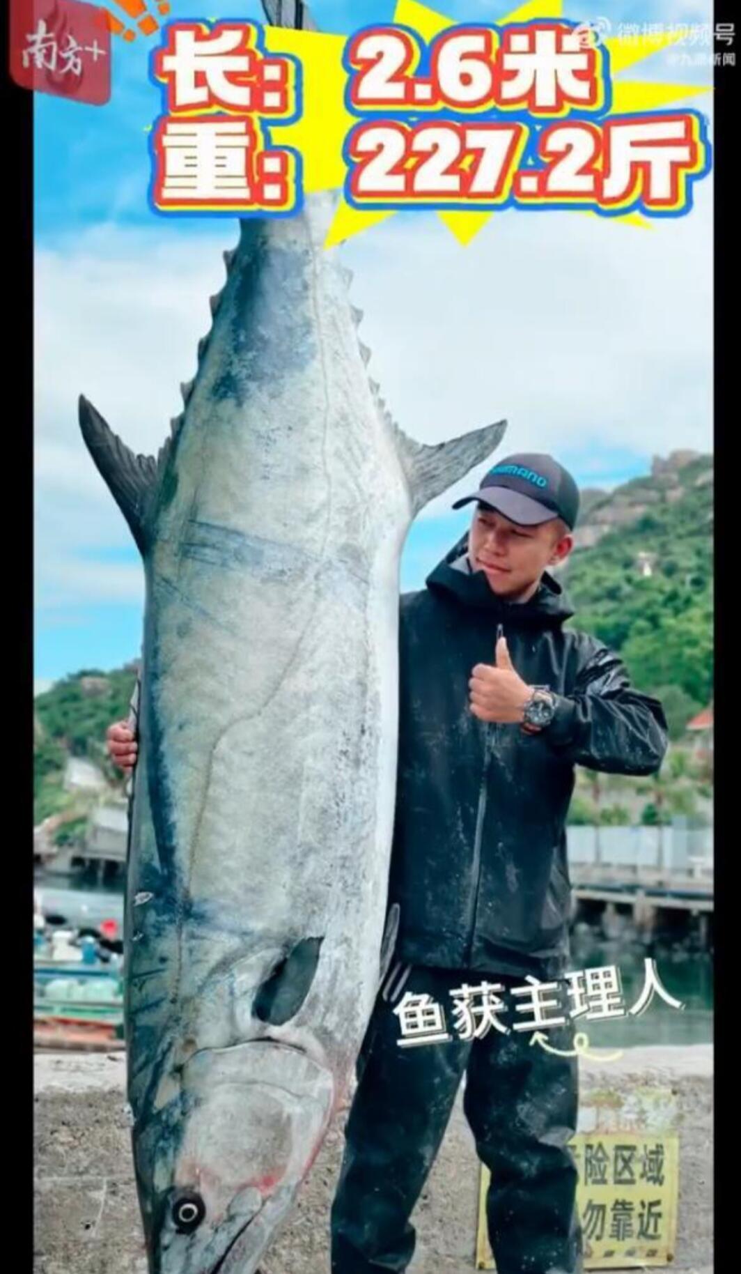 嚯,珠海有个老哥是真牛X,直接在庙湾那边海里干上来个大家伙!一条鱼,二百二十七斤