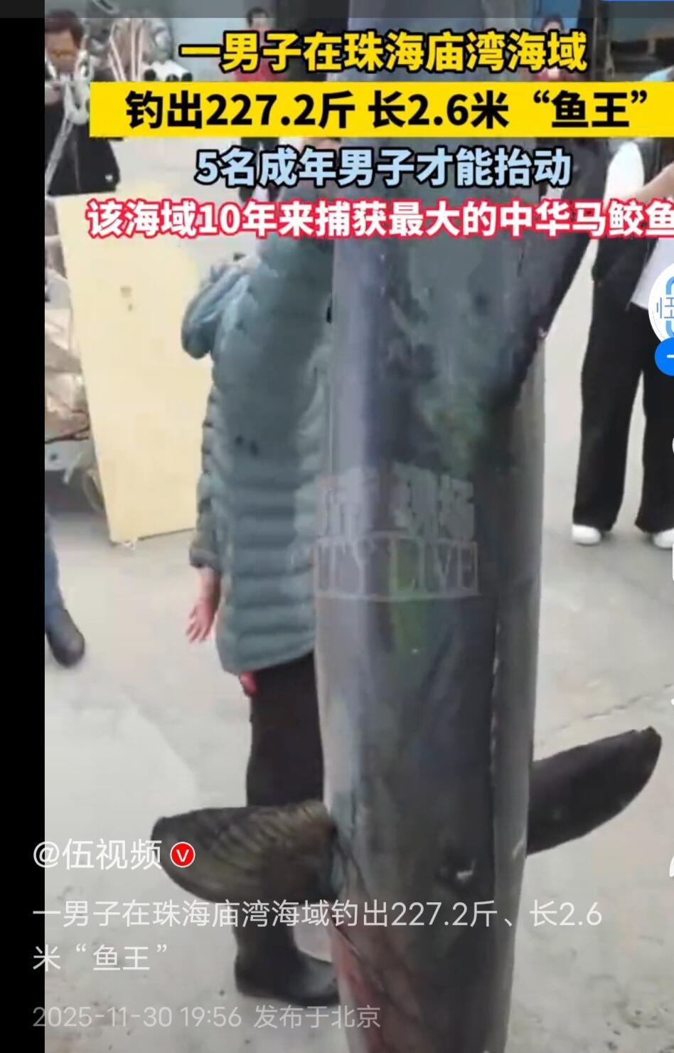 嚯,珠海有个老哥是真牛X,直接在庙湾那边海里干上来个大家伙!一条鱼,二百二十七斤!好家伙,比我还要重。 听说光是跟这鱼拔河就折腾了快俩钟头,差点把人给累趴下。等鱼真拉上来了,所有人都傻眼了——太大了,一个人根本弄不动,最后叫了四个壮汉一起上手,才把这“鱼王爷”给请上岸。一量,身长两米六,跟一张小床差不多。当地的老渔民都直咂嘴,说在这片海混了十来年,头回见着这么大的中华马鲛鱼,绝对是“鱼王”级别的。 现在这大鱼被冻在外伶仃岛的冰库里,估计这老哥自己家冰箱是塞不下的,得想想是卖了还是咋处理。这事儿看着是挺爽,钓鱼人的终极梦想了属于是。 不过爽完了也得琢磨琢磨。这么大的鱼,在海里得活了多少年才长成这样?它可不是凭空蹦出来的,那是海洋生态链里顶重要的一环。现在被钓上来了,说实在的,有点可惜。咱也不是说不能钓鱼,但以后遇到这种怀了孕的、特别稀罕的“老祖宗”鱼,是不是能高抬贵手,拍个照留念就放回去?给它们留条活路,也是给咱们子孙后代留点想头。不然都捞干净了,以后海里就剩小鱼小虾,那还有啥意思? 总之就是,老哥牛逼是真牛逼,但这事儿也提醒咱,对大海得有份敬畏之心。别光顾着自己爽,也得想着细水长流。