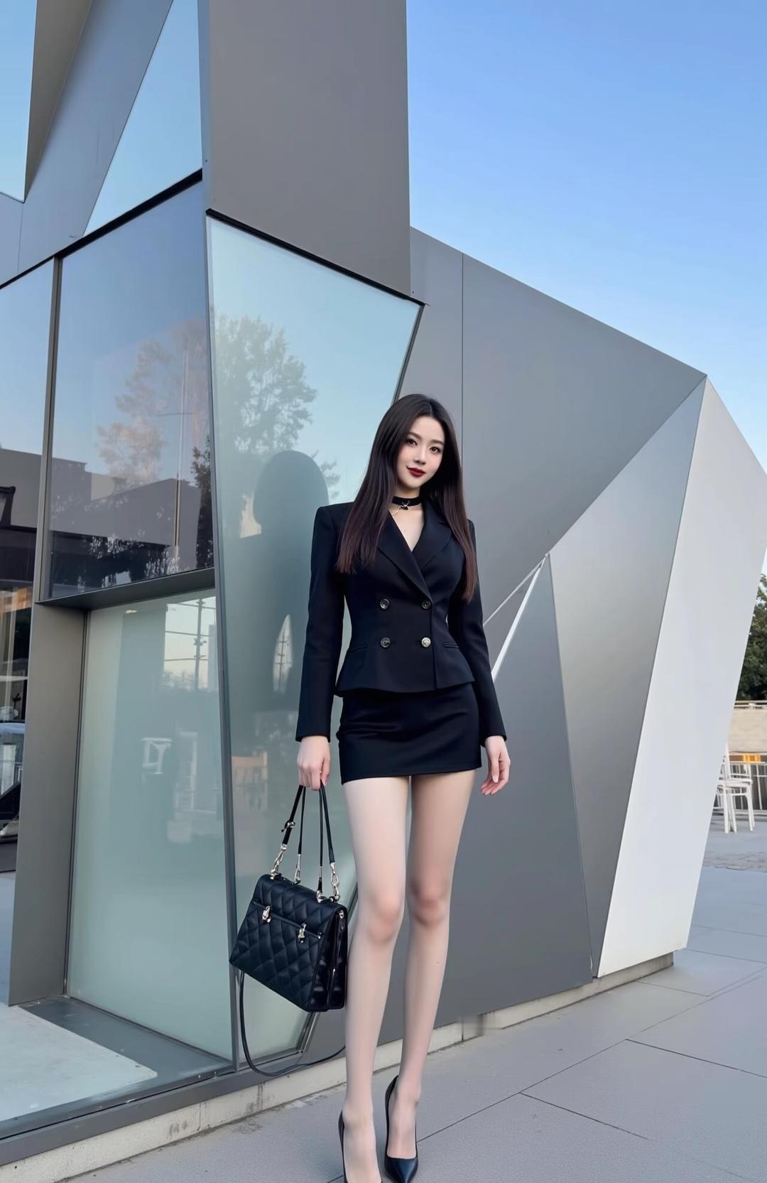 都市女郎的时尚穿搭,黑色西装裙搭配高跟鞋,尽显优雅与自信!👠💄👗