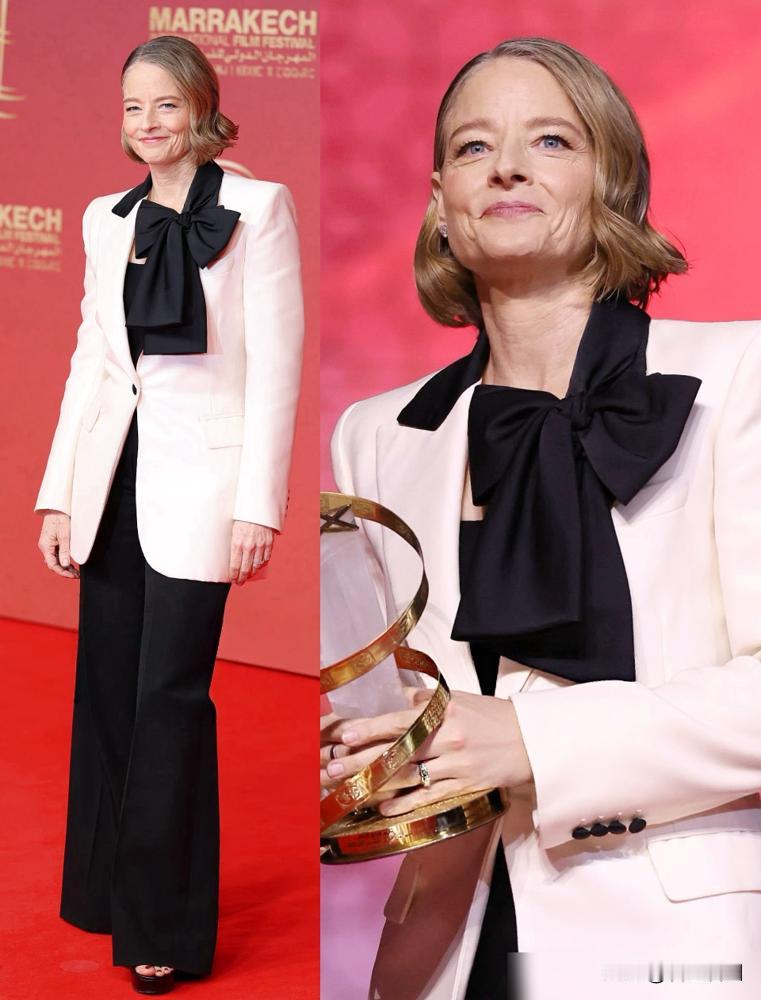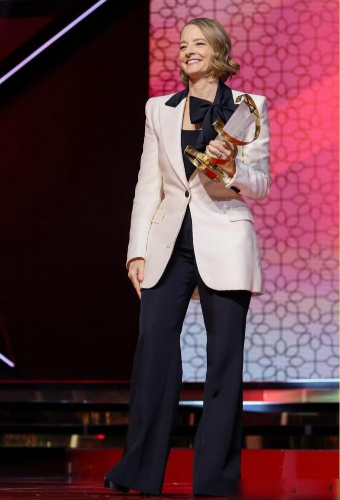 朱迪领取终身成就奖,朱迪兔原型就是女王🏆。 63岁的朱迪·福斯特最近在摩洛哥拿了终身成就奖! 颁奖的还是奉俊昊,这俩都是我超爱的影人,凑一起真的太有排面了~ 她小时候就开始演戏了,3岁拍广告,8岁就进好莱坞了! 最牛的是,未满30岁就拿了两次奥斯卡最佳女主,《被告》和《沉默的羔羊》,这在奥斯卡历史上都少见吧? 现在多少演员熬一辈子都没这运气加实力呢。 而且她不止演戏,还当导演制片,连《黑镜》《纸牌屋》都导过,跨界玩得这么溜,真的绝了! 还有啊,她居然是耶鲁毕业的学霸! 主修非洲裔美国文学和非洲文学,后来还拿了耶鲁的荣誉博士,戏演得好就算了,书也读得这么扎实,这姐是真厉害。 对了,《疯狂动物城》里的朱迪警官,名字就是致敬她和安东尼·霍普金斯! 怪不得那股子精明干练的劲儿,跟《沉默的羔羊》里的克拉丽斯一模一样,太巧了~ 听说她还有法语新片2025年上映,期待死了! 能把这么多事都做好,朱迪·福斯特真的是我心里的传奇啊~
