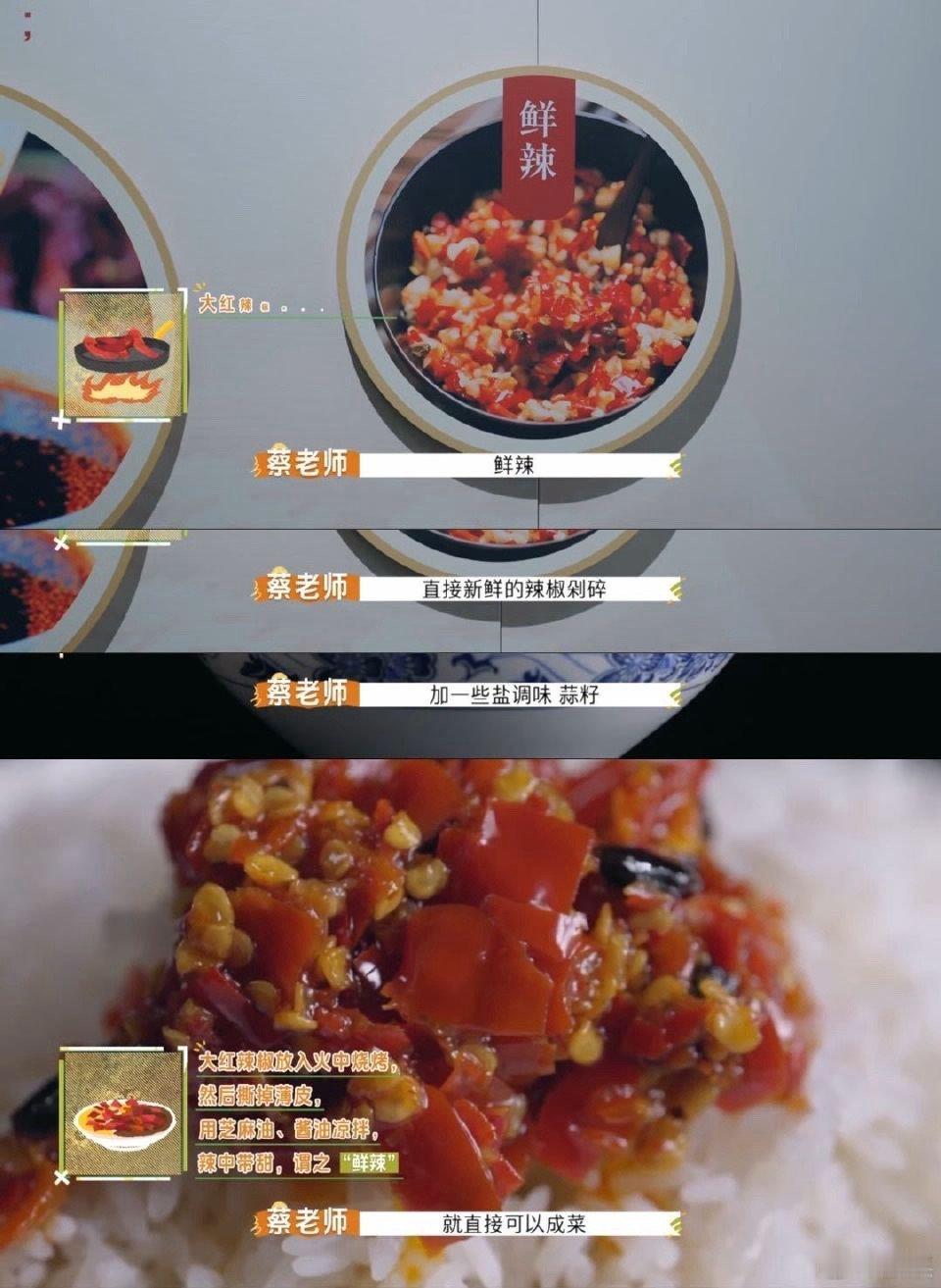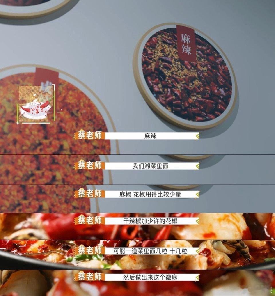 湘菜竟然有6种不同的辣味 这期节目应该改名叫《湘菜辣味图鉴》。六种辣味就是六章内容,每章都有独特的风味哲学。建议蔡老师出本书,我一定买来当湘菜点餐指南,吃出专业水准。