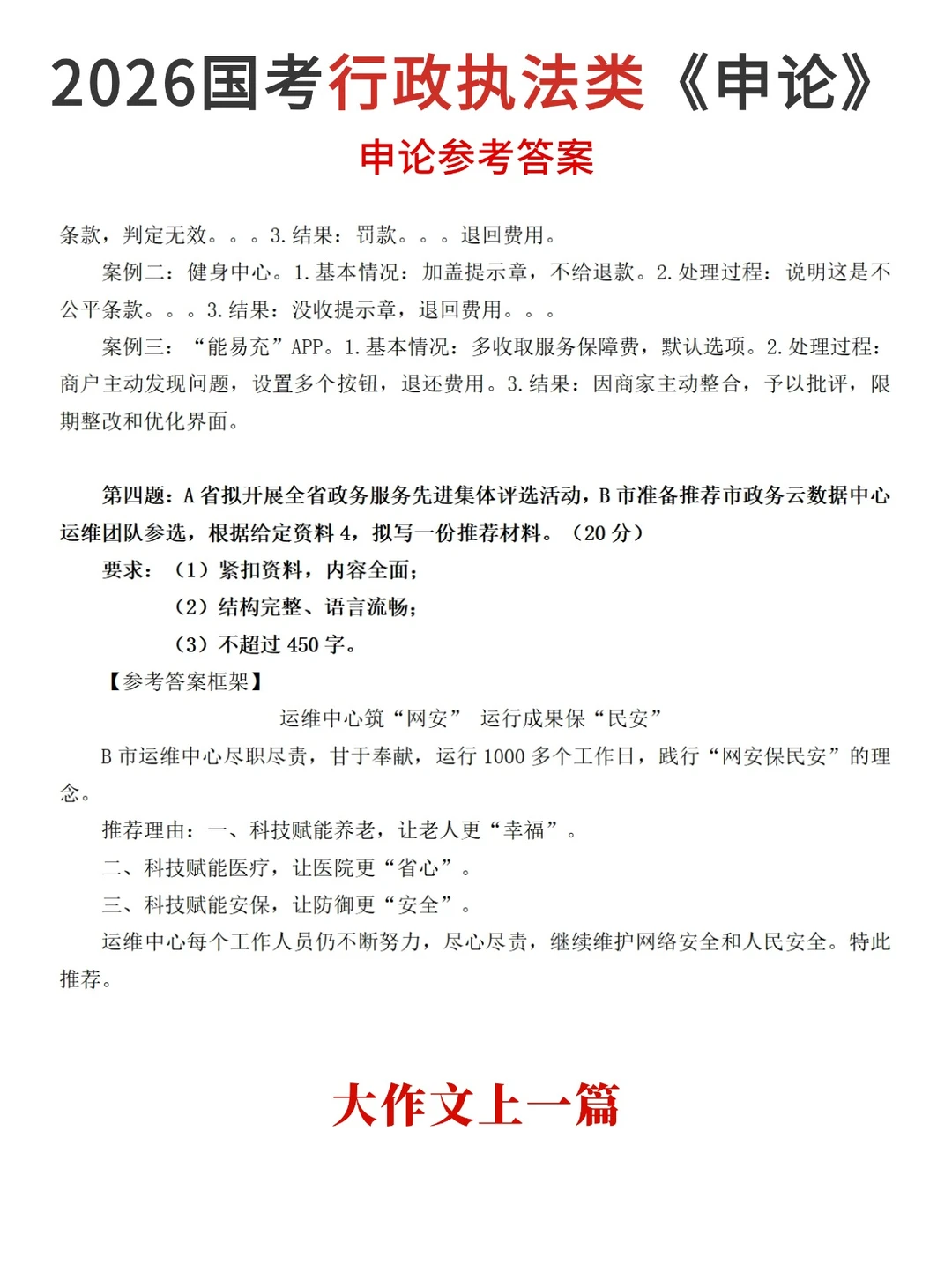 公考 国考 考公 2026国考 申论 行政执法类 国考答案 申论答案 26国考