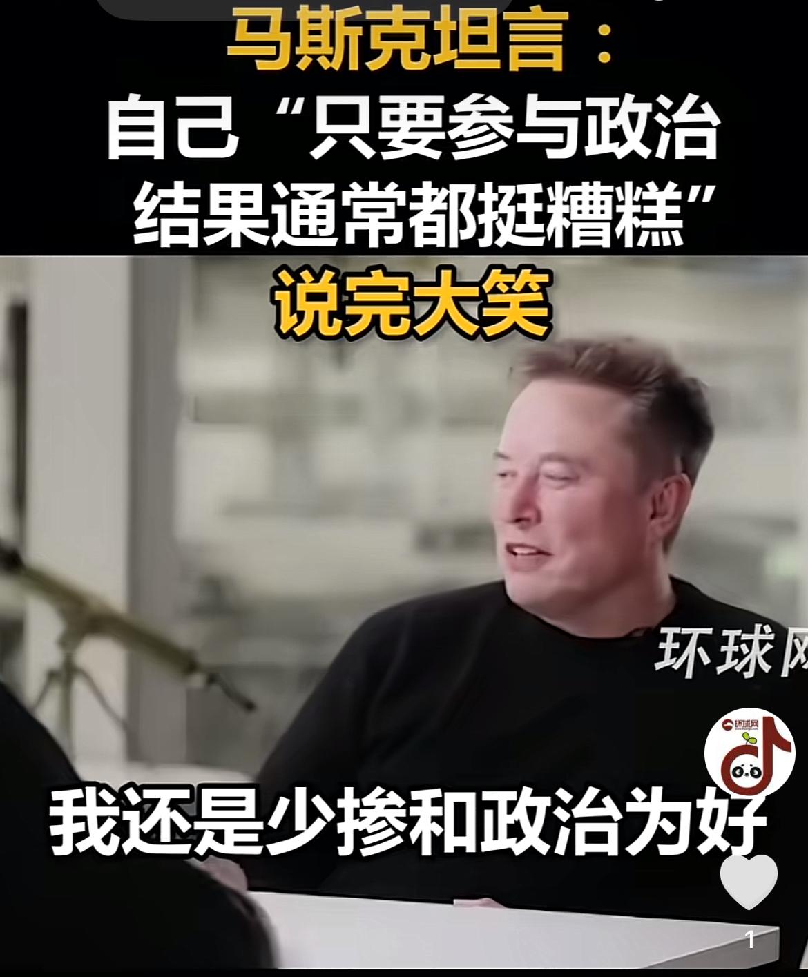 近日,美国富豪马斯克在接受采访时坦言:“我还是不太适合涉足政治,一旦参与其中,结果往往不尽如人意!”他还表示日后会减少对政治的参与。 马斯克此次宣称减少对政治的参与,或许是权衡利弊后的明智之举。在美国搞政治,水太深了,谁不是老谋深算之辈?稍有不慎,甚至可能丢掉性命。倒不如踏踏实实搞些前沿科研成果出来!马斯克 特斯拉马斯克 世界首富马斯克