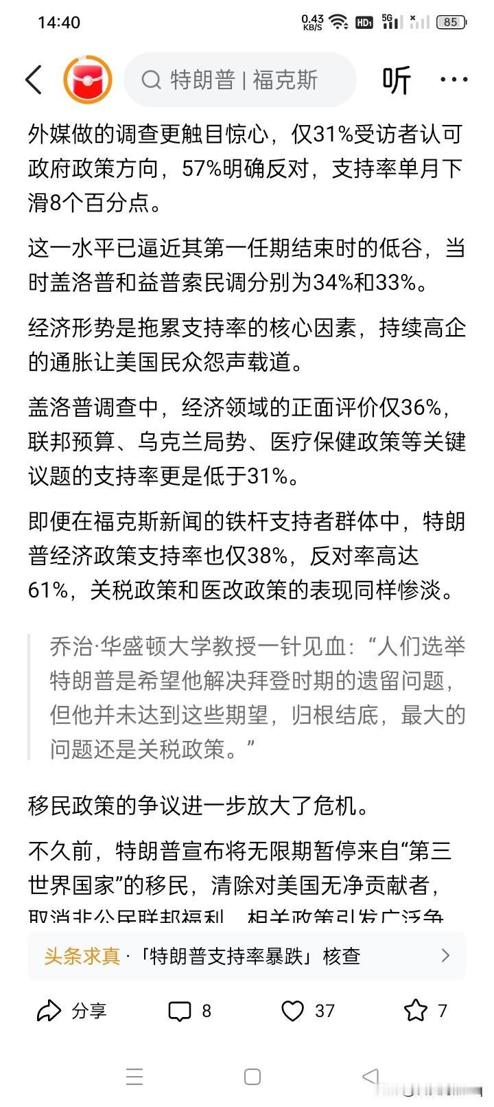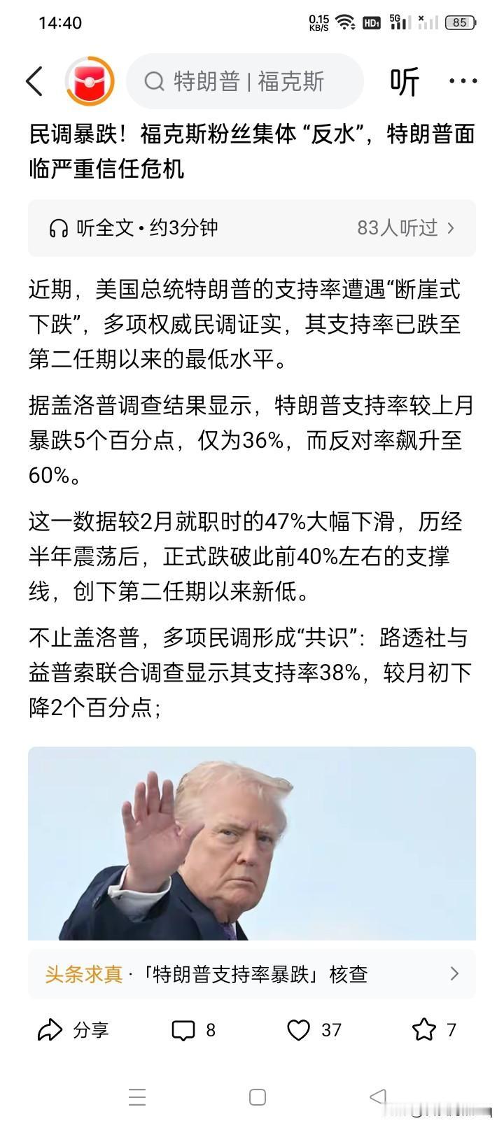 不跌才怪呢! 最近,网络上有不少消息一再声称,美国总统特朗普在各个不同的民调机构调查中,都显示出支持率严重下跌,特别是在美国的穷人中,支持率更是下跌的十分严重。 特朗普这个美国总统,怎么说呢,似乎说话非常轻佻,甚至是毫无根据的任意判定事情的真相,又常常变化多端,出尔反尔差不多成了家常便饭。好像他不是个美国的总统,也不是个在全世界大概最有权势的人,在大庭广众之下发言,倒更像是百无聊赖的人在饭饱酒足之后的闲扯。 但是他的每一句话,都有可能导致成千上万、甚至是无数的人忙于应对,途于奔波。尤其是特朗普对他以前的政治对手的攻击和诋毁,就是外人看来也没有任何必要,反而显得心胸狭隘,毫无胜利者的胸怀大志。 颠三倒四,看不到个正常面相。 表面上看疾恶如仇,实际上不过是个人好恶,与国家利益挂不上边。