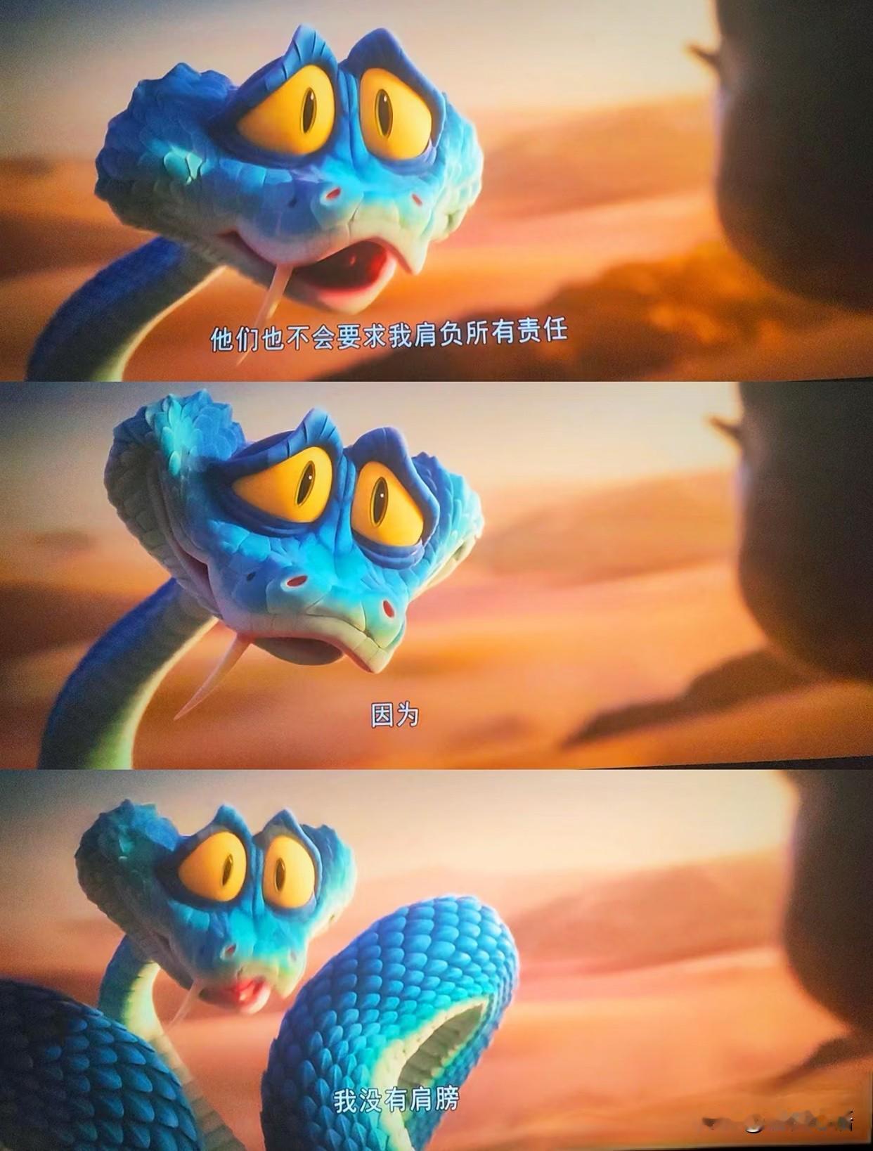 看《动物城2》悟了! 养娃松弛感原来这么简单😭 刷完《动物城2》直接被小蛇盖瑞戳中了! 以前看这类角色, 总以为是“为家族牺牲自我”的苦情戏。 毕竟我们这代人, 谁没被灌输过“要争气”“别给家里丢脸”? 但盖瑞真的不一样! 他说想为家族出力,家人从不让他独自扛。 还超可爱地补了句:“毕竟蛇没有肩膀啊!” 瞬间破防了! 这句话轻描淡写, 却把责任和自由平衡得刚刚好。 这哪里是小蛇,这是被爱托住的底气啊! 我们总逼孩子“要优秀”“别落后”, 却忘了孩子也可以不用逞强,不用自责。 做得到就向前冲, 做不到就回头看,身后有人撑着。 养娃哪用那么焦虑? 不用逼孩子背太多压力, 不用让他靠“承担”证明自己。 好好爱他,稳稳托住他, 他自然能长得坚定、善良,不畏惧世界。 原来最好的育儿, 就是给孩子“蛇没有肩膀”的松弛感❤️ 愿每个娃都能被温柔以待, 不用逞强也能闪闪发光!