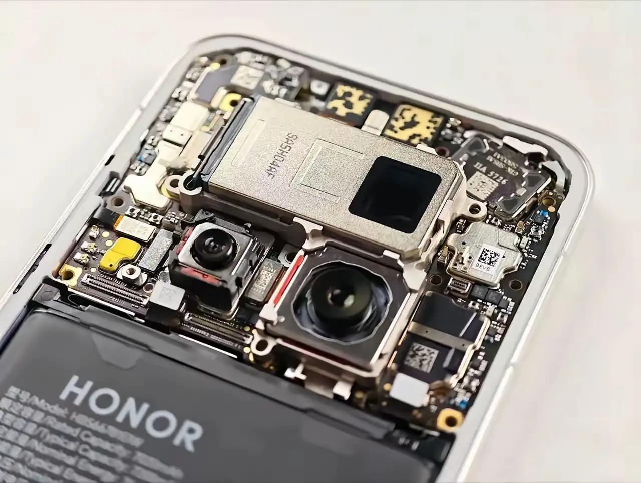拆机大佬拆开荣耀 Magic8 Pro 后看到,在仅 8.3 mm 厚的机身里,影像模组占据了非常大的面积,尤其是那颗潜望式长焦极为抢眼,难怪影像表现如此出色,内部布局精密紧凑;机身下半部则塞进了 7200 mAh 的大电池。