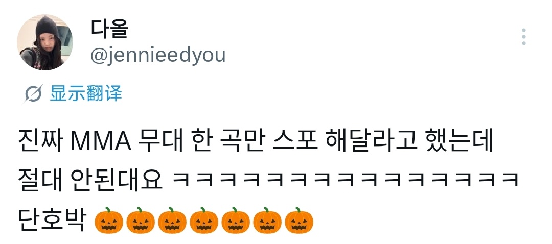 粉丝想让Jennie透露一首在MMA年末舞台上的歌曲,得到了绝对不行的答案哈哈哈哈哈哈哈😉