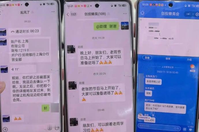 109个人“炒股群”108个是“托” 上海警方及时拦截,挽回老人10万养老积蓄 媒体报道,上海静安警方成功揭穿了一个名为“中新股”的投资理财骗局。事情的经过是这样的,静安区某工商银行网点,一位老人家匆匆忙忙的走进营业厅,让银行柜台工作人向一个陌生账户汇款10万元,工作人员向他询问细节时,老人拿出手机向工作人员展示了一个微信群,名为“创投精英汇”。 柜台人员感觉有异,可是老人家非常坚持就是要转,而且还声称能获得超20%的收益,慢了就没有了,得赶紧转钱才能认购,越听越不对劲于是银行柜台工作人选择了报警。 民警到场后调查了解发现,所谓的“中新股”机会,仅建立在一份粗糙的PPT和一群素未谋面的“网友”承诺之上,群管理员发送了一份关于合肥某公司的详细介绍PPT,声称该公司即将上市。阿姨也曾怀疑过,毕竟这些年国家的反诈宣传不是白做的,很多人心中还是有根弦,阿姨曾与儿子核实,儿子在网上确实查到了这家公司,资料显示其“明年将上市”,这让母子二人深信不疑这是一个绝佳的投资机会。 后经警方深入调查发现这个“创投精英群”里109人,108个都是托,只有阿姨一个是真正的潜在被害人,真是让人防不胜防啊,108个人陪老人家一起演戏。调查还发现阿姨使用的APP和公司PPT均属伪造,该APP所属公司没有任何金融执照,不是正规证券或投资机构。在多方证据面前,阿姨才心悦诚服,感谢民警和银行工作人员为她保住养老钱。 在此也要再次提醒广大网友,投资者应选择正规金融机构,不轻信陌生网友推荐的投资平台,谨防诈骗。