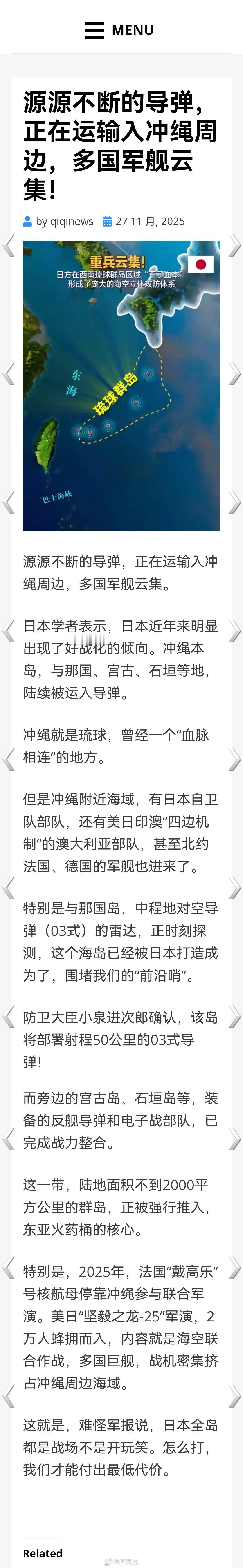 源源不断的导弹,正在运输入冲绳周边,多国军舰云集!海外新鲜事何天恩高市早苗搂肩熊抱滑椅子