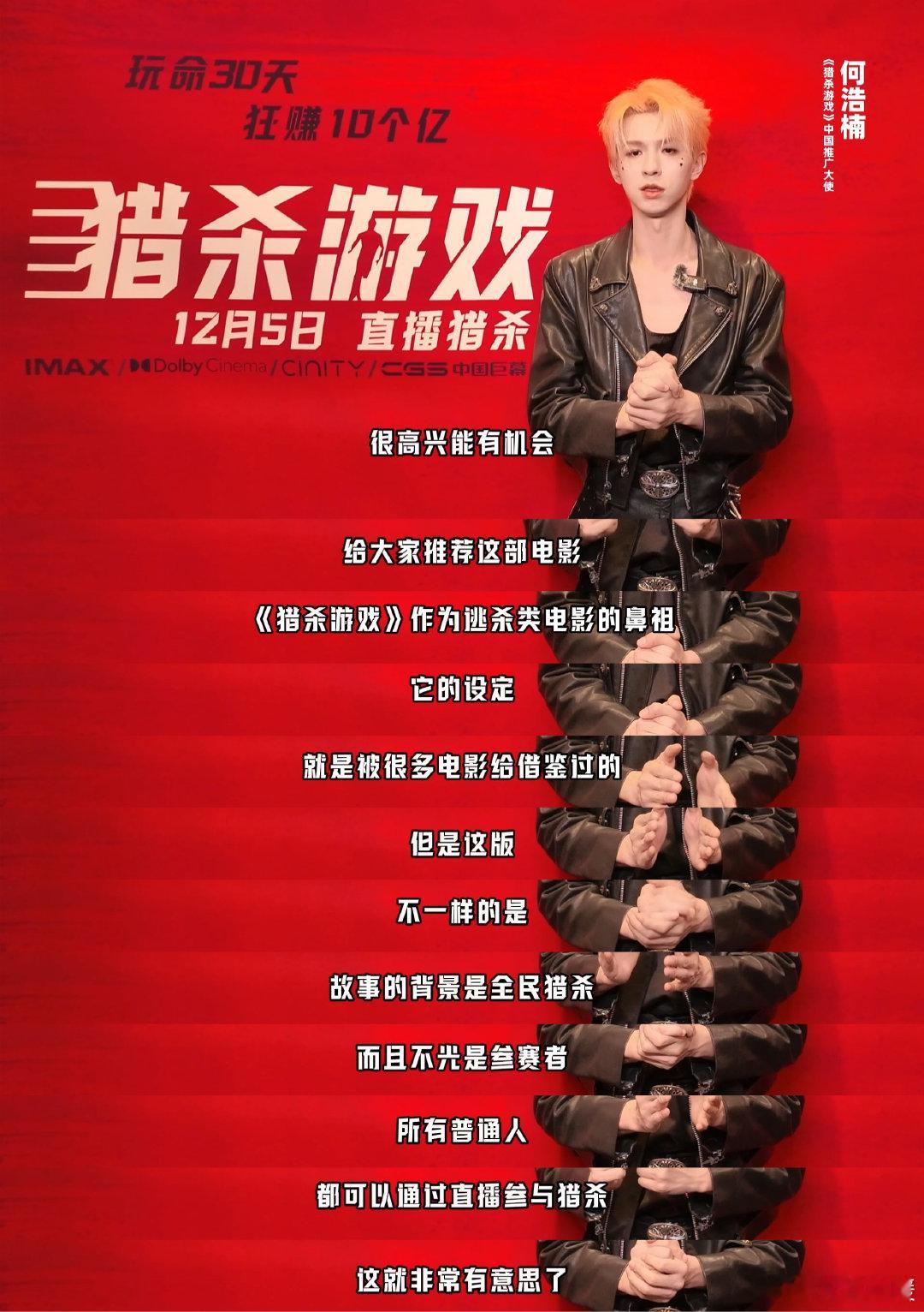 何浩楠献唱猎杀游戏推广曲 《猎杀游戏》中国推广曲来咯,由何浩楠演唱的《Look at me》上线。已经迫不及待想听,期待他更多新歌大放异彩~😜何浩楠猎杀游戏中国推广曲特辑