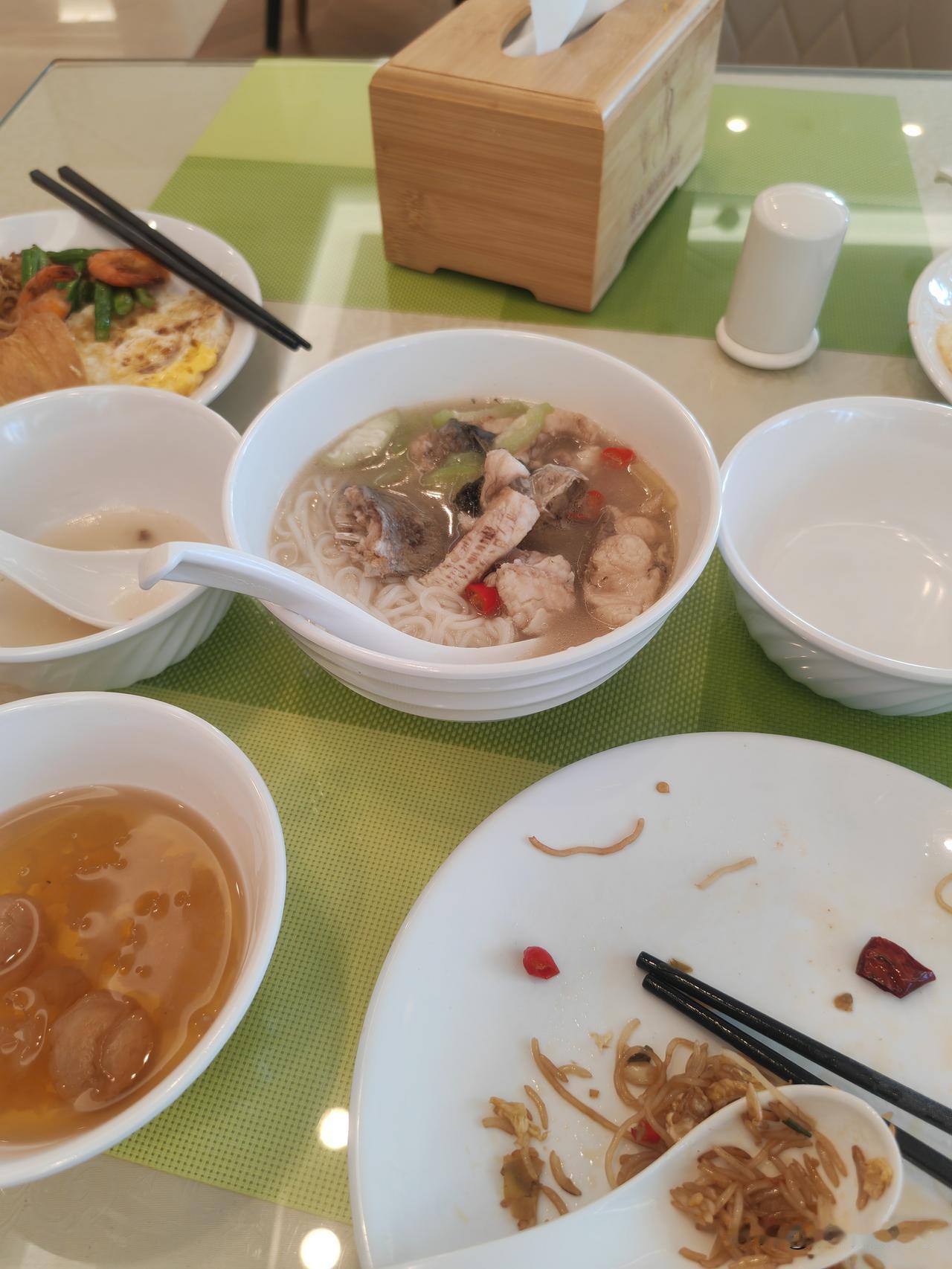 七八年前去过衡阳,当地朋友请我吃了几顿饭,最让我怀念的是鱼面,念念不忘鱼面的汤鲜味美。 这次国庆自驾途经衡阳,在蔡伦大道的一家酒店住下,惊喜的发现酒店自助早餐竟然有鱼面,于是赶紧要了一碗。它是那种单人份一小碗的,而我记忆中的鱼面是用鱼头熬汤下面装一大碗盛上桌,几个人分食。朋友告诉我还要提前一天预订。 鱼面还是那个鱼面,但已然没了第一次吃的那种惊艳。这次能有缘再次吃上鱼面,也算了却一个心愿,了却几年来我心中对衡阳鱼面的那份碎碎念。