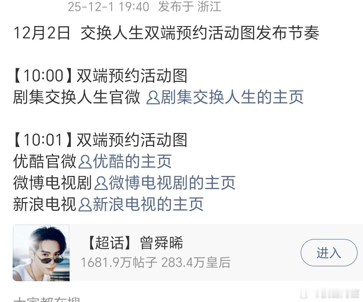 曾舜晞《交换人生》明日预约发布官宣节奏,这部剧推进的也是很快的,期待Mars大神