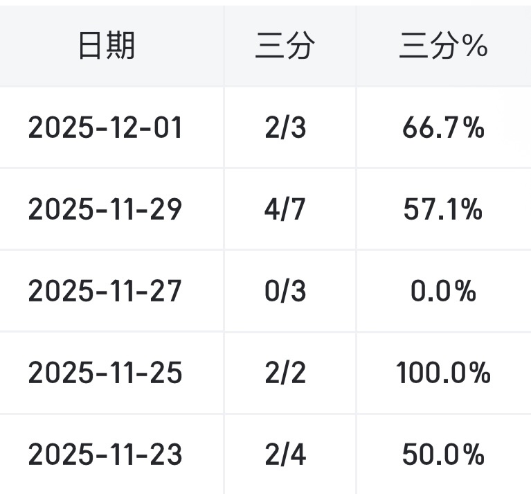 过去5场比赛,波普三分球19中10,命中率52%。赛季场均32.9%,底角三分25%。