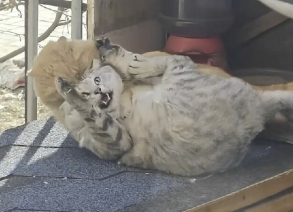 橘白猫上周生下六只崽,我趁她上厕所把最胖的两只拎去隔壁。回来她继续叼娃搬家,舌