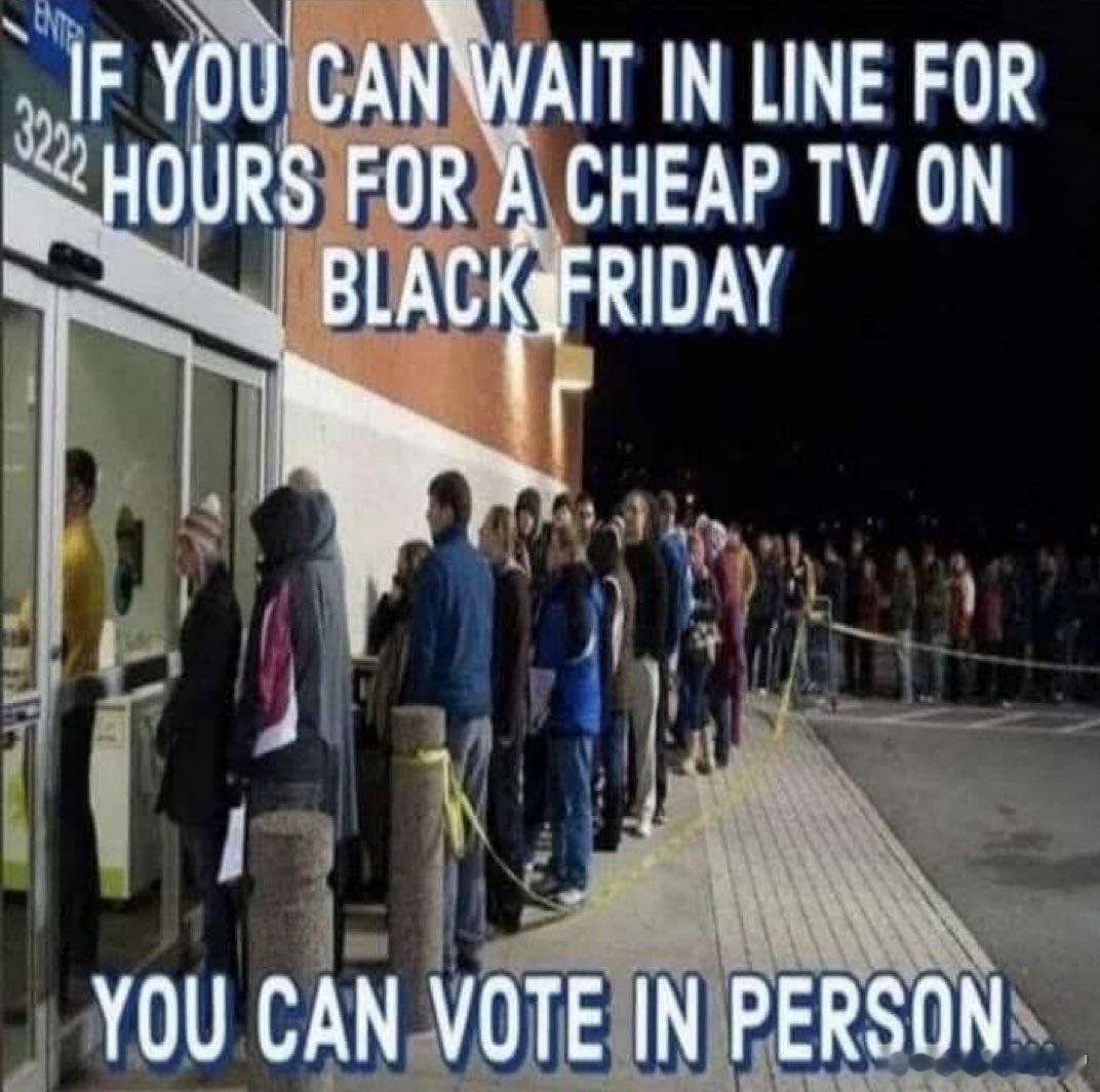 “如果你能在黑五当天排几个小时的队买一台便宜的电视机,那么你就可以亲自到投票站投