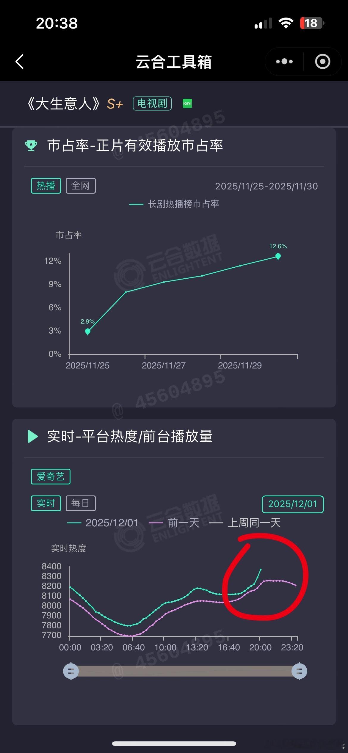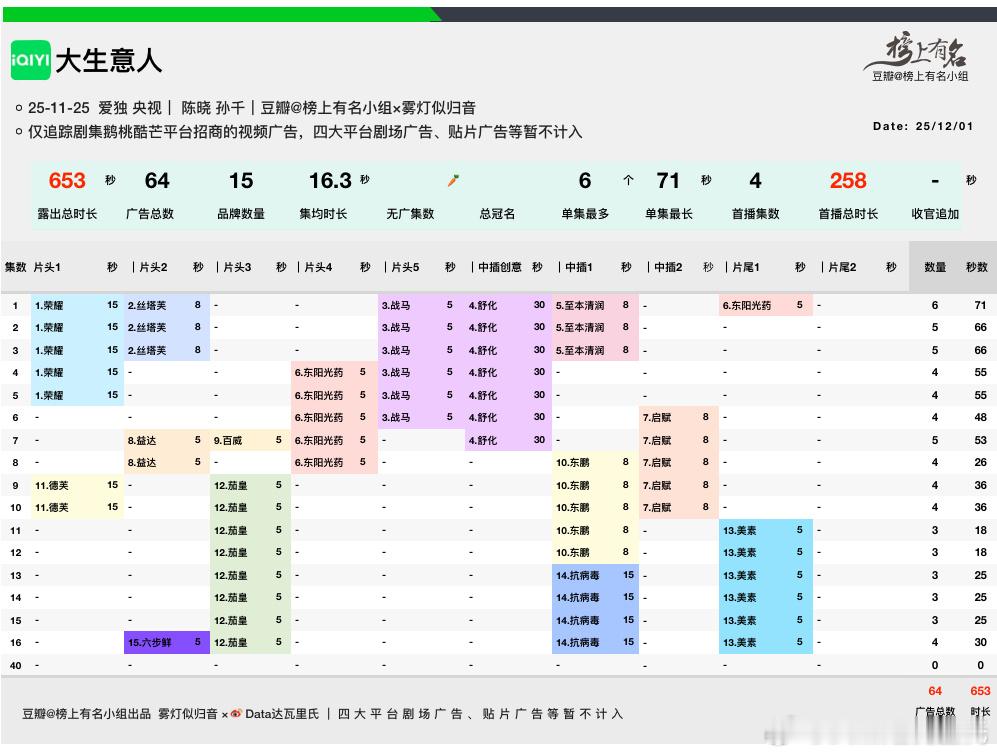 陈晓大生意人 周一热度涨得挺猛(氵没氵自己判断),当前热度8433,今晚估计热度破8500~招商最新单集4广30s,15品牌,64广,总时长653s酷云收视应该还是稳定在每日集均2.6上下大生意人数据大生意人数据