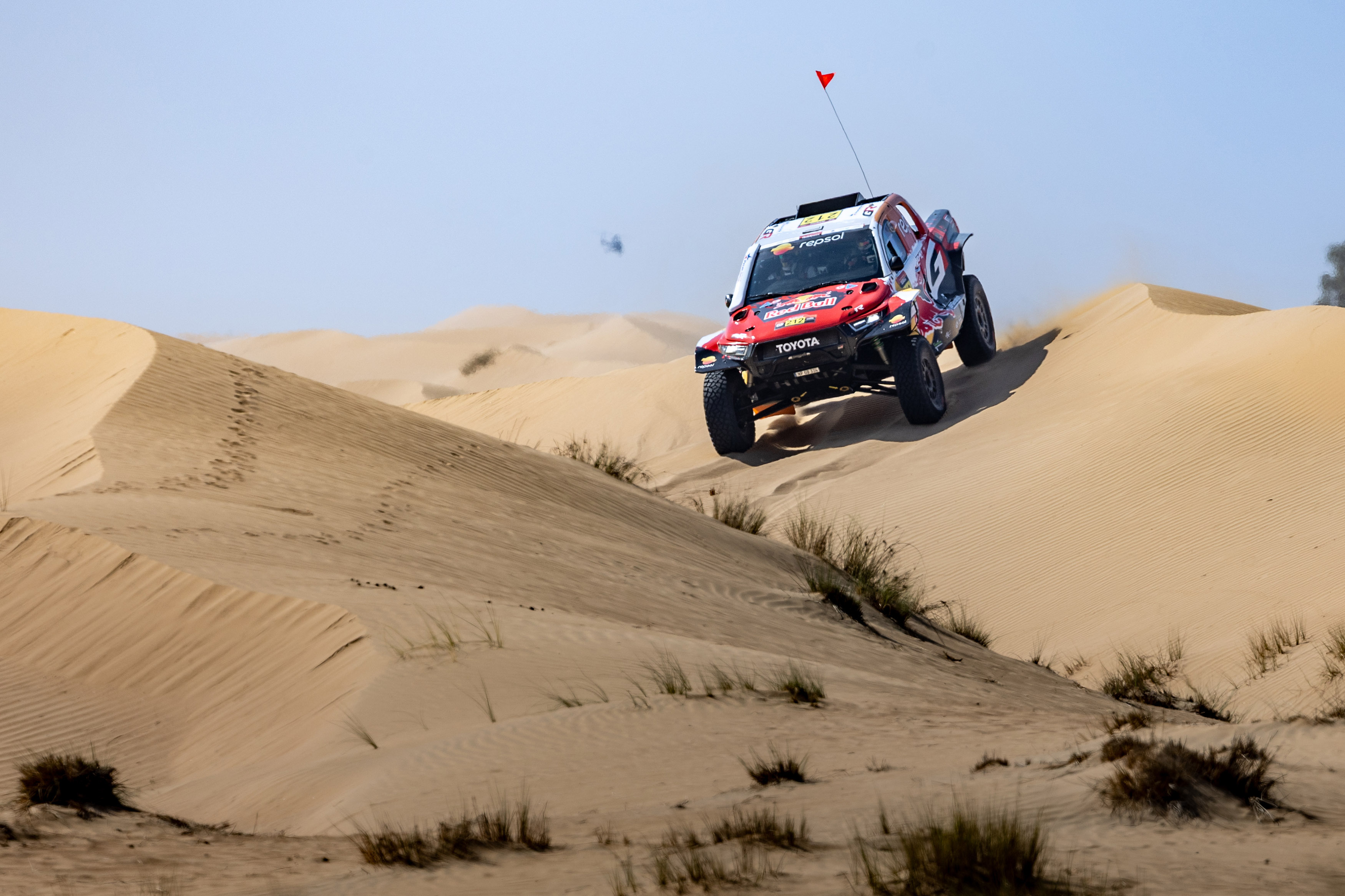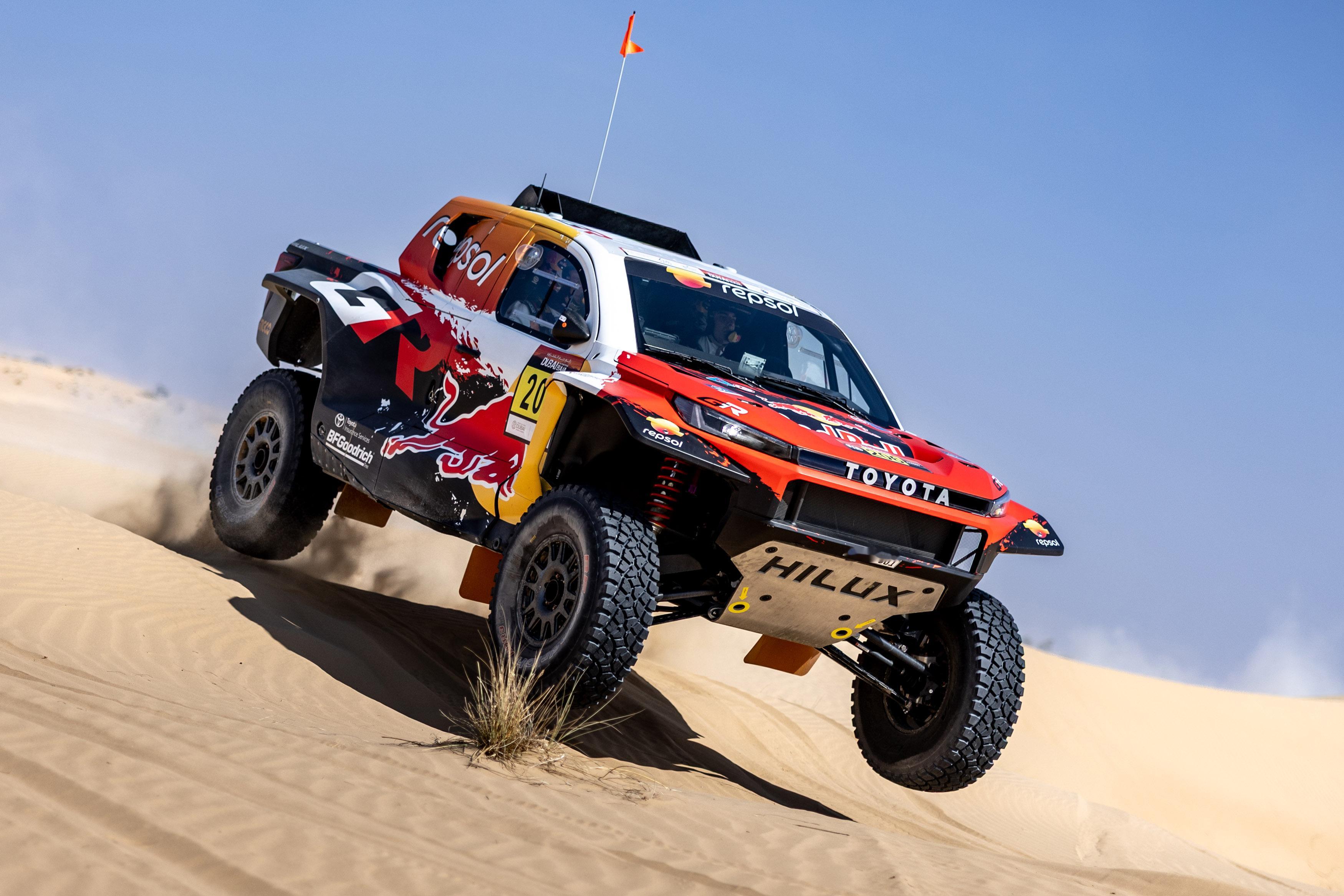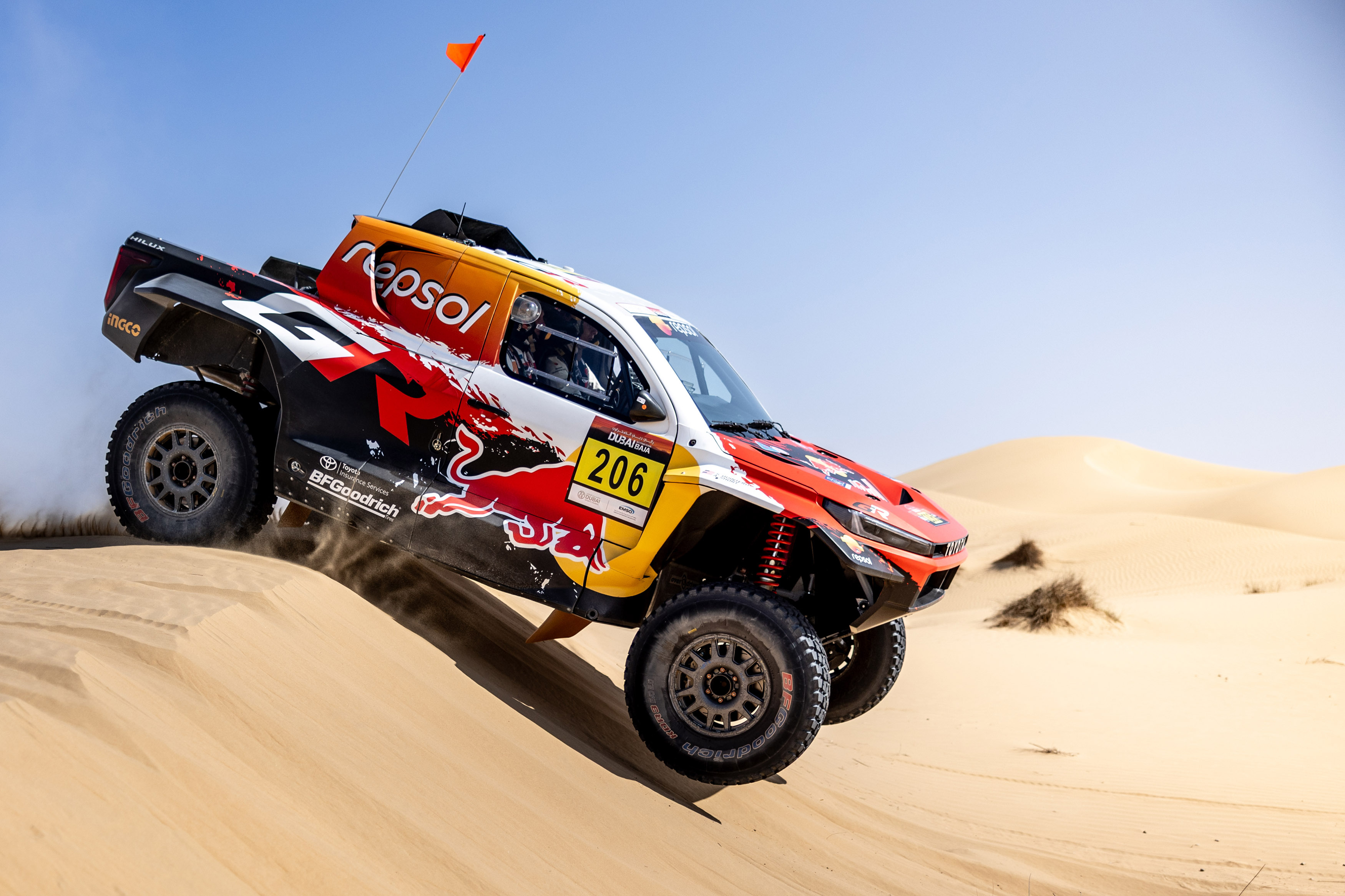 丰田全新DKR GR Hilux首战完成~丰田为2026赛季W2RC准备的全新T1+规格赛车DKR GR Hilux上周末在迪拜巴哈拉力赛上首度亮相,其中普莱斯在周日的比赛中做出了全场最快的成绩,最终位列总成绩第三,而金特罗则是在试跑和第一赛段拿下第一,但因为在超速被罚时5分钟结果屈居亚军。虽然没法拿到比赛的胜利,不过以赛代练的目的也算是达到了,金特罗认为驾驶一辆全新的赛车在近400公里的高强度比赛中没有碰到大问题很让人印象深刻;而今年加入TGR W2RC车队的普莱斯则非常享受熟悉新赛车的过程。据之前的报道,全新的DKR GR Hilux依然由Overdrive负责开发,采用了丰田第九代Hilux的造型,新设计的管状车架在提升扭转刚性之余也减轻了重量,赛车的维修便利性也得到改善,最后也换上了强化过的变速箱以应付各种极端的负载。而按照计划,新赛车会在2026年的达喀尔拉力赛上率先交付厂队使用,随后在下半年向私人车队开放。🧾 Toyota达喀尔拉力赛丰田赛车