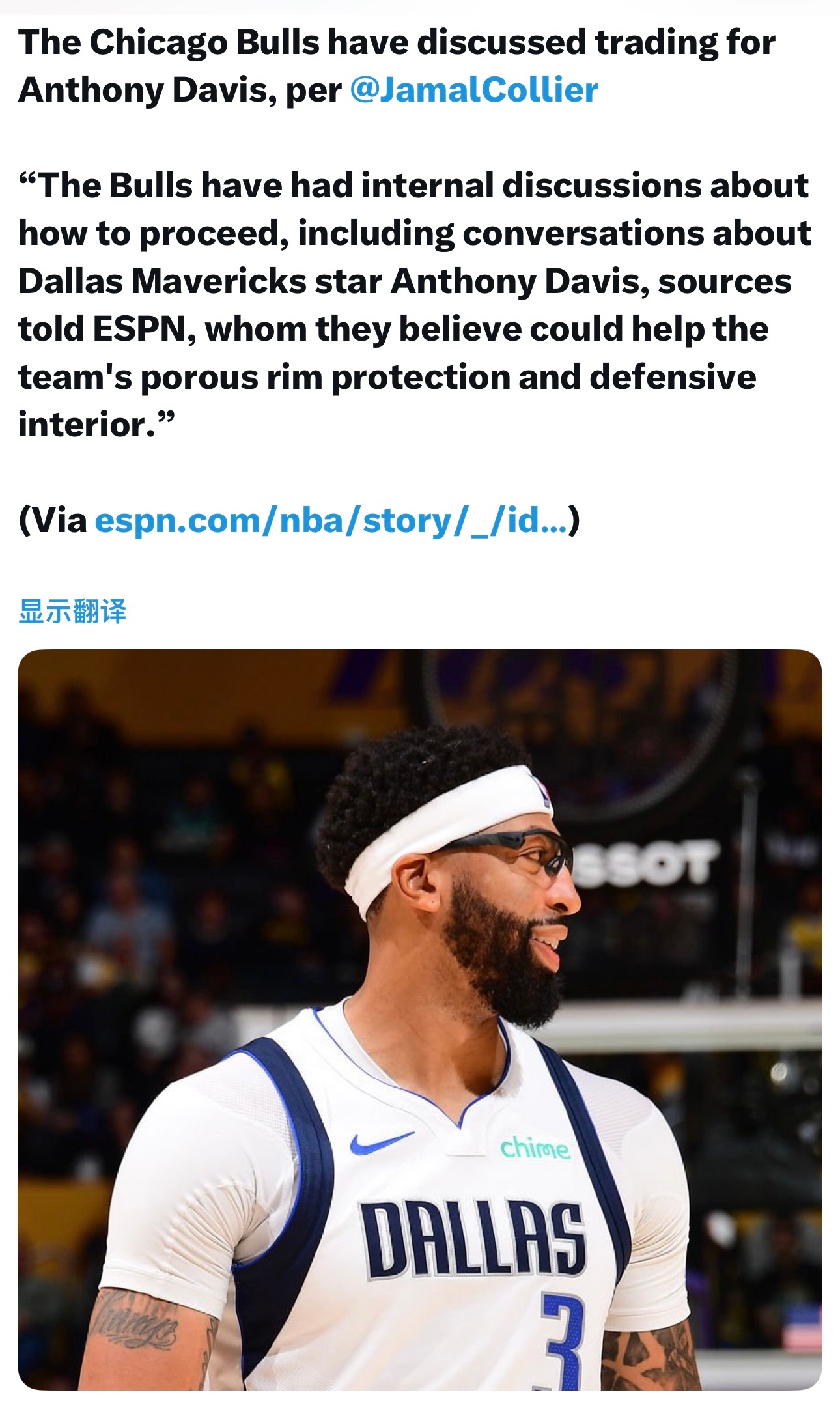 ESPN:公牛队已经内部探讨过交易得到安东尼·戴维斯,他们认为这位出生于芝加哥的