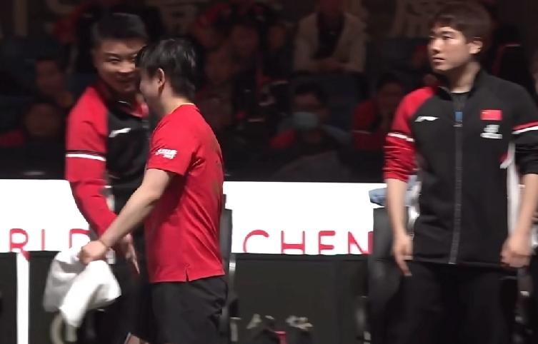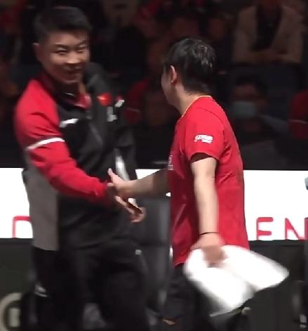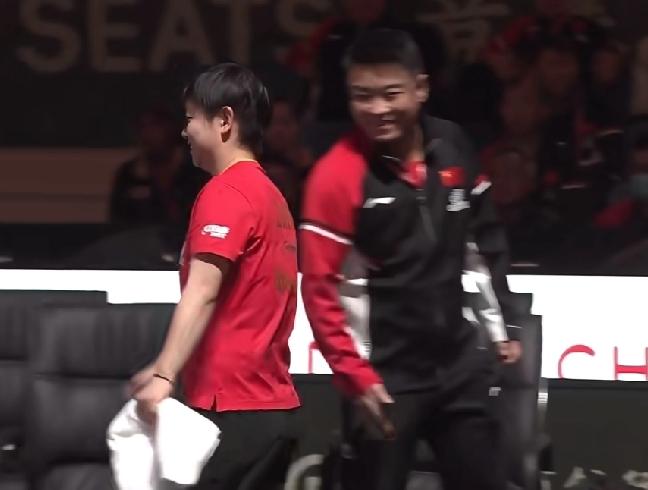 看到白告这“不值钱”的笑容, 就知道他多喜欢莎莎, 就连站在旁边的甜甜都惊呆了。 混团第二天国乒对战埃及, 莎莎女单3:0获胜, 赛后和教练、队友击掌。 你看白告看莎莎那眼神、那笑容, 这是多稀罕莎莎。 每次王皓看莎莎, 都有种想要挖角的感觉, 就差说一句“有没有兴趣来男队”。 就连站在旁边的甜甜, 都被白告的笑容震惊到了。 满脸痘写着, 这样的笑容是我们从来没有过的待遇。 这次混团, 白告和马琳做场外, 终于让他体会到有闺女的感觉了, 估计他都爱死这次的混团了。