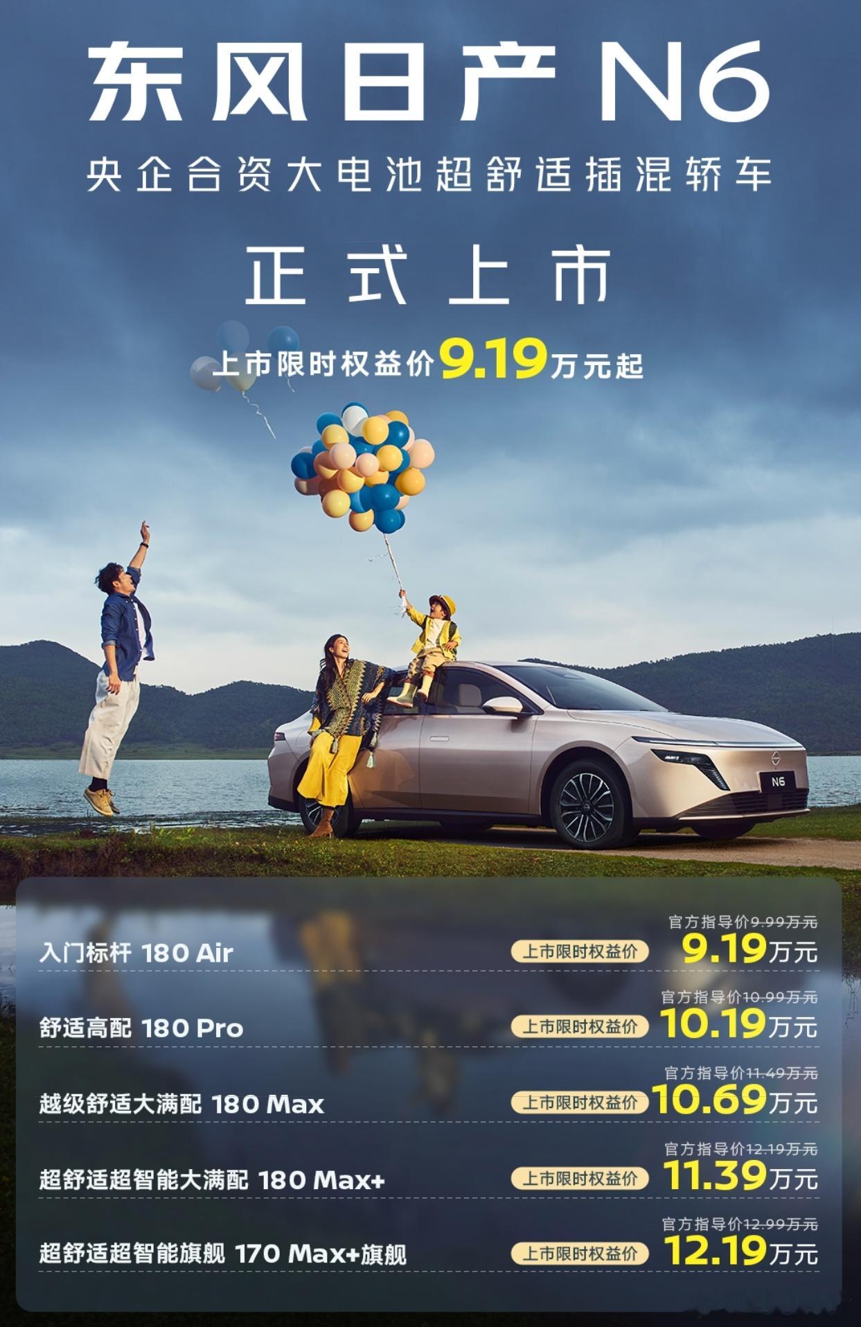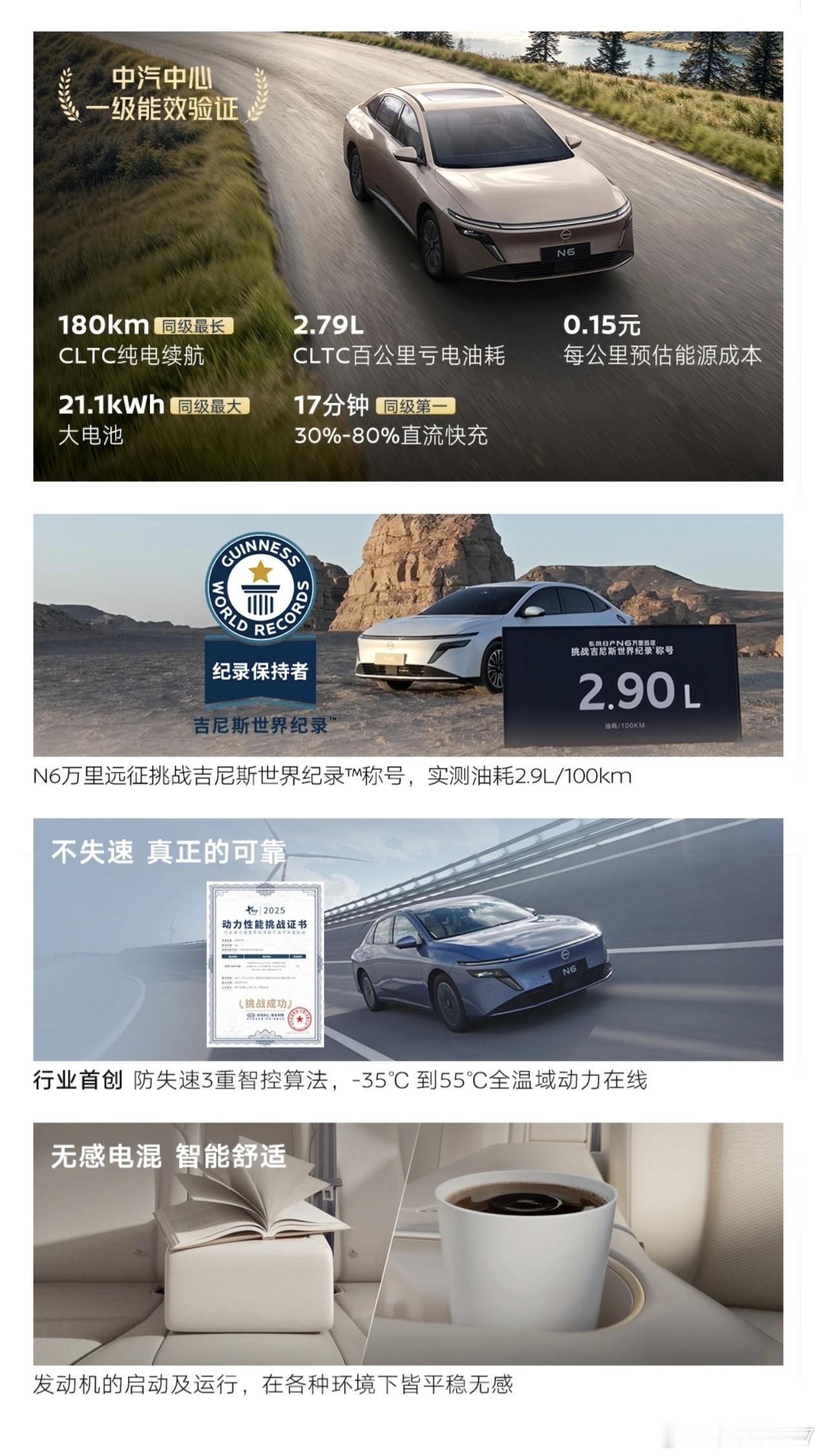 之前开吹N7时,很大一个原因就是我在发布之前已经试过了这台车,而发布会最后给出的11.99w-14.99w让我觉得超值,产品力绝对对得起这个价格。这次N6可以理解为N7的标轴产品,相比N7缩减了10cm轴距和车长,空间仍然够用,4.83m的车长还是有中级车的水平。顶fans已确认,n7和n6的智能化是合资车中的顶级水平,我作为大众ID的精神受害者,一个好用的车机和一个稳定的高速领航真的太重要了,日产这个座舱主要来源于科大讯飞,智驾来自魔门塔,很好用,我对这个结论负责座椅可以理解为N7同款,一直讲的是AI,但实际上的坐感才是这个座椅最强的部分,入座感比过去的天籁还要舒适很多。何况这台车只要9.19w-12.19w,对于在这个价位,希望买个插电混动的用户这个确实很合适。要说不足呢?上市确实晚了,好些地方的补贴已经停了。另外少了N7上的扶手压缩机冰箱;纯电续航180km,如果有个同尺寸的纯电可能受众更广。东风日产n6汽场全开