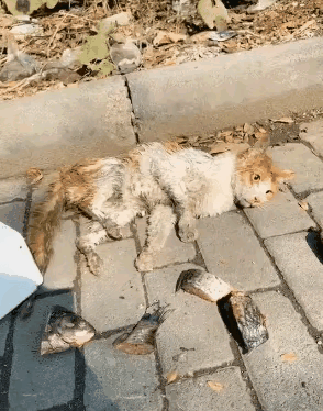 这只流浪猫只是闻了闻晾晒的干鱼,便被主人家打成了这样,只剩下了一口气,真是最狠不过人心!