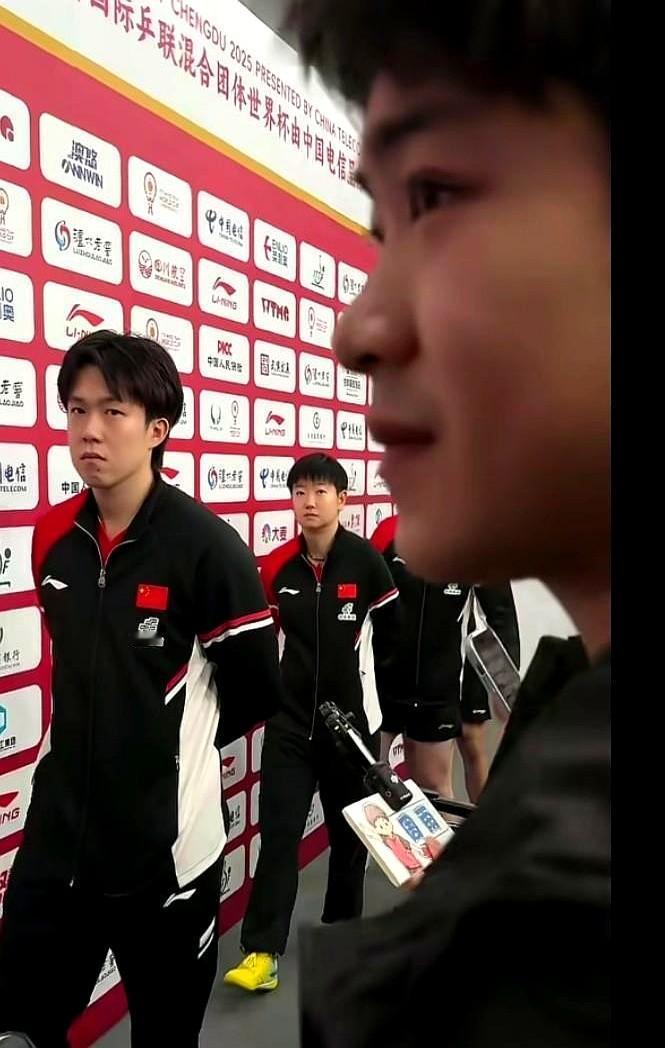 今天成都混团赛后的采访真是太有意思了。曹魏,就是那个“草莓熊”,居然摇身一变成了记者,拿着话筒就去采访国乒队了。 王楚钦一看见他就绷不住,先是踢了他一脚,那表情好像在说“你怎么混进来的?”。更好笑的是,接下来两个人就开始“演戏”了。 他们假装不认识,曹魏一本正经地提问,王楚钦也一脸严肃地回答。但他俩全程都不敢对视,估计是怕一笑就穿帮。旁边还能撑住,但蒯曼直接没忍住,捂着嘴偷笑。 这演技真是绝了,配合得天衣无缝。不过话说回来,曹魏,你给莎莎准备的生日烟花秀那事,是不是也该给大家个交代了?